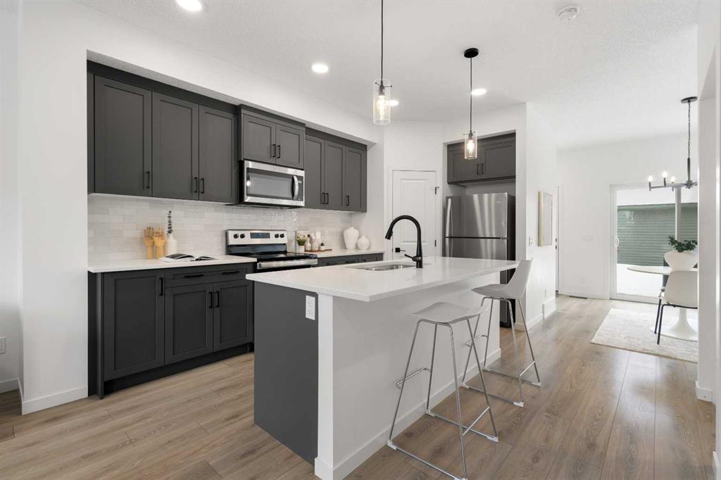 Don’t miss this opportunity to own a beautiful modern townhome in one of NW Calgary’s most desirable neighborhoods — now for sale and with NO condo fees! This well-designed home features a spacious front porch and an open-concept main floor with a bright front great room, a cozy dining area, and a large kitchen complete with corner pantry, stainless steel appliances, and a central island with eating ledge — perfect for family meals or entertaining. Enjoy central air conditioning to keep you cool and comfortable during the summer months. Upstairs, the primary suite offers vaulted ceilings, a private ensuite with dual sinks, and a convenient laundry area. Two additional bedrooms provide plenty of space and storage for family or guests. The bright basement includes high ceilings, oversized windows, a recreation room, one spacious bedroom, and a 4-piece bathroom. A side door provides private entrance to basement. Recent Updates: This home has been refreshed with a brand-new exterior including siding, roof, soffits, gutters, etc., plus newly finished landscaping and a brand-new fence. The property also includes a detached double garage and a smart layout ideal for growing families or investment-minded buyers. Enjoy the convenience of being just a 10-minute walk to shops, restaurants, green spaces, and a playground. You’re within walking distance to Walmart, T&T Supermarket, Dollarama, and several popular food chains, with schools and parks close by. The Rocky Mountains are also less than an hour away, offering year-round outdoor adventures. Book your private showing today, explore the 3D tour and floor plan!