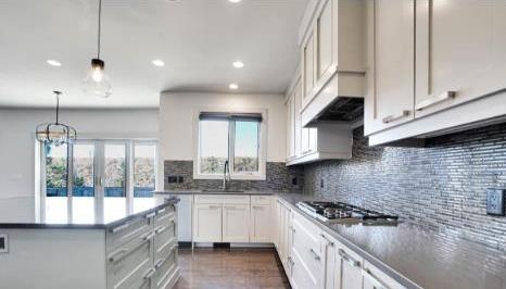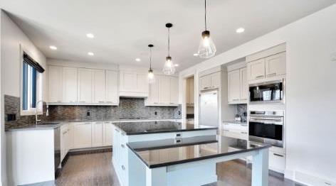 Welcome Home to Luxury & Convenience! Discover this truly distinguished home, showcasing exceptional curb appeal with its striking architecture. The elegant stone facade, complemented by rich contrasting trim and multiple gabled rooflines, creates a sophisticated and inviting welcome. Located in the heart of West-spring, this expansive residence offers nearly 4300 sq ft of meticulously designed living space. Completely refreshed and move-in ready, it features a fresh coat of paint throughout for its new owners. Step inside to an instantly inviting open-concept floor plan designed for modern living. The heart of the home is a gourmet kitchen, a true chef's delight with sleek countertops, high-end appliances, and ample cabinet space, perfect for entertaining. This flows seamlessly into a soaring great room, creating a grand yet comfortable family space highlighted by a cozy fireplace and abundant natural light. An elegant open staircase serves as a stunning architectural feature, connecting the levels with grace. The fully developed basement is an entertainer's dream, offering a very large, open area perfect for gatherings and relaxation. Complete with a full, stylish bar and ultimate comfort thanks to radiant in-floor heating, this space creates a warm and inviting atmosphere for a family room, home gym, or whatever your heart desires. Outside, you'll find a beautifully manicured and fully landscaped yard, complete with an efficient sprinkler system, ensuring your greenery stays vibrant with minimal effort. The private backyard provides a serene oasis for relaxation and outdoor gatherings, perfect for enjoying those sunny days. Location is key, and this home delivers! Enjoy the incredible convenience of being within easy walking distance to both elementary and junior high schools, making school runs a breeze. This isn't just a house; it's a lifestyle upgrade in a prime location!