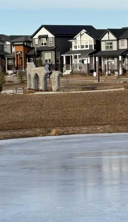 OPEN HOUSE SATURDAY FEB. 21st FROM 12:30 PM - 2:30 PM *Magnificent former showhome situated across the street from a large pond and a future estate area. Enjoy the view from your very own full width covered veranda. The home itself combines a bright, open layout with contemporary comfort. Once inside, the quality of the workmanship is extraordinary. From the retro partition wall in the foyer, to the cozy great room fireplace with its streamlined mantle, to the elegant metal railing on the staircase and the soaring high ceilings, you will feel right at home. From the front of the home to the back, it is one expansive open space. The kitchen is sensational, featuring a huge island with eating bar, drop down pendant lighting, a modern upgraded backsplash, sleek chimney hood fan, stainless steel appliances, and striking three tone cabinetry. It is truly a showstopper. As you head upstairs, the metal railing continues beyond the staircase and throughout the upper floor. The primary bedroom has it all, including a vaulted ceiling, a massive walk in closet with MDF shelving, and a grand five piece ensuite with double sinks and a five foot wide tiled shower. The spare bedrooms are located at the rear of the home, offering excellent separation for homeowners. The large laundry room includes a counter, cabinets above the washer and dryer, and additional shelving for linens. The basement is undeveloped and ready for future development, with rough in plumbing for a bathroom already in place. The double car garage provides secure parking and additional storage. Be the first to view this remarkable home.