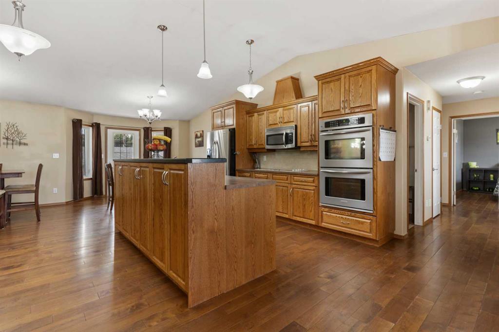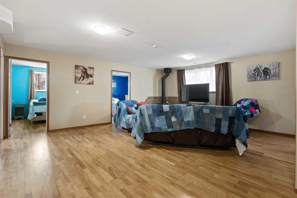 Welcome to the heart of Forestburg—where small-town charm meets modern convenience! This beautifully designed custom bi-level home offers nearly 2,000 sq ft of main-level living, plus a bright and fully finished 1,568 basement, creating the ideal space for families of all sizes. This home is an ICF build! Sitting proudly on two full lots, you’ll have room to roam both inside and out. The attached 30' x 40' boiler in-floor, heated garage is a true standout, boasting 12.5-foot ceilings, 10-foot overhead doors, and an 11-foot rear drive-through door—perfect for RVs, large trucks, or your dream shop setup. With front and rear driveways and space for up to 9 vehicles (plus street parking), you’ll never run short on parking. Need even more space? A detached 18' x 24' garage is perfect for a workshop or extra vehicle storage. Step inside to soaring vaulted ceilings and an open-concept floorplan ideal for entertaining or relaxed family living. The main level features an entry-level recreation room with a separate entrance, currently used as a pool table room—ideal for a home office or business. The spacious kitchen and dining area easily accommodates two dining tables and opens onto a multi-level, maintenance-free deck—partially covered for year-round enjoyment. The main level also includes a main-floor laundry, a den/home office, and 2 generously sized bedrooms, including a luxurious primary suite with walk-in closet and 4-piece ensuite featuring a jetted soaker tub. Downstairs, the fully finished basement provides even more space with a cozy family room warmed by a wood-burning stove, 4 large and bright bedrooms, a gym or second office, and a flexible open space perfect for hobbies, study, or play. Additional highlights: In-floor heating system with 5 active zones (plus 6th ready for the detached garage) powered by a high-efficiency boiler Tons of natural light throughout Ideal for large or growing families! Move-in ready and meticulously maintained Enjoy the friendly atmosphere of Forestburg while staying close to exciting new developments coming to the area. Don’t miss your chance to own one of the most unique and versatile homes in town!