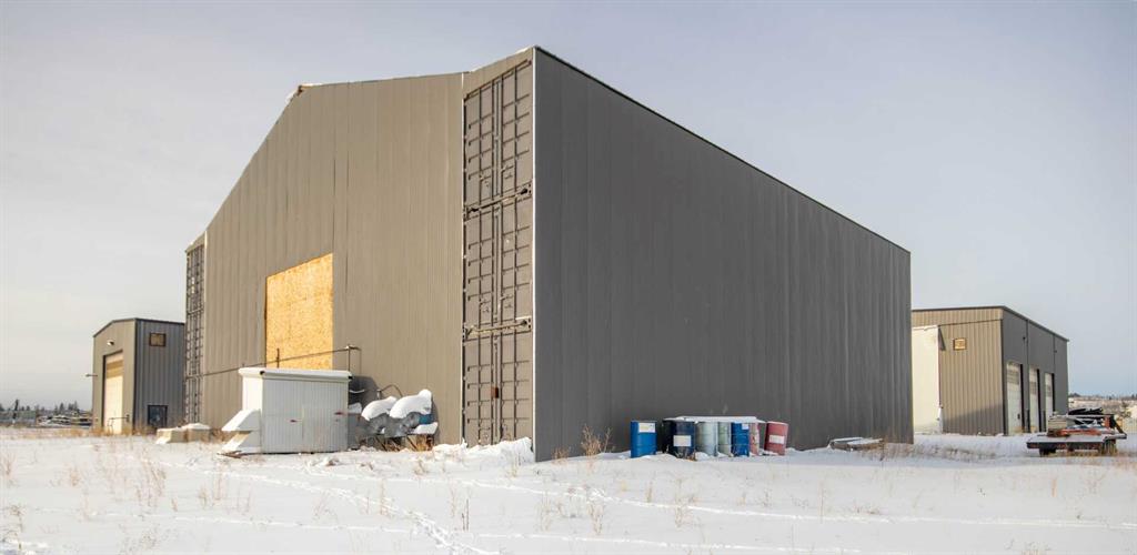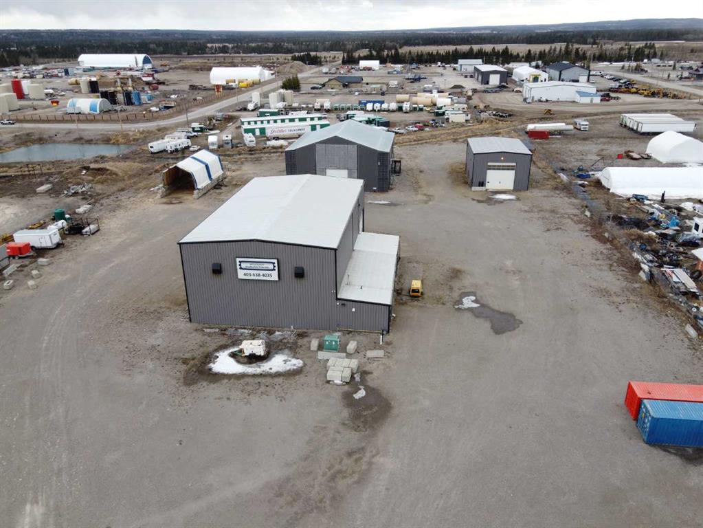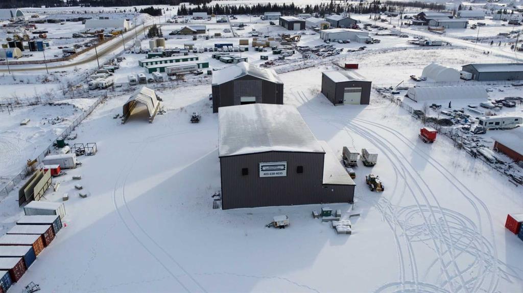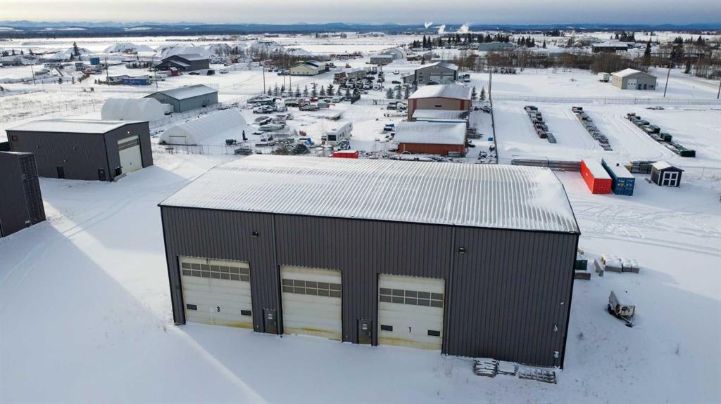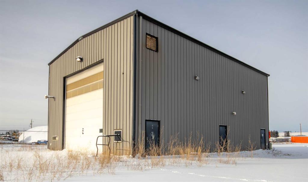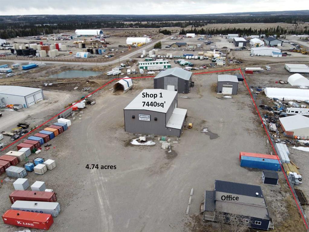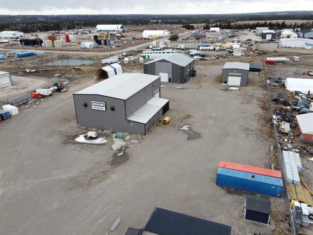 For Sale · 4.74+/- Titled Acres in a fenced & gated industrial parcel just west of Sundre, AB. Property boasts a 7,440 +/- sq ft heated Shop #1 with an attached axillary building that has a washroom, utility room, office, & mechanical bay. Building has 4 (20’x20’ doors) & 1 (30’x30’ door) on south end & an overhead crane. Property has an administrative office,which is 1579 +/- sq ft & contains 6 office spaces, meeting room, reception area, print area, staff lounge & washroom. There are two other large shops on property. Shop #2 is +/- 2400 sq ft & has 2 (20’x20’ doors) & is not presently heated, it also has an overhead crane. Shop #3 is formed by 12 sea cans utilized as sidewalls & is +/- 4800 sq ft plus +/- 1280 sq ft in 3 tiers of seacans & is not heated. One sea can is accessible from the interior of building & two are accessible from west side of building. The other sea cans are only accessible from end doors. There is also a concrete block & containment area, which is about +/- 1440 sq ft. suitable for storing shavings, soil, or equipment. Opportunity & entrepreneurism awaits. Potential for leasing.