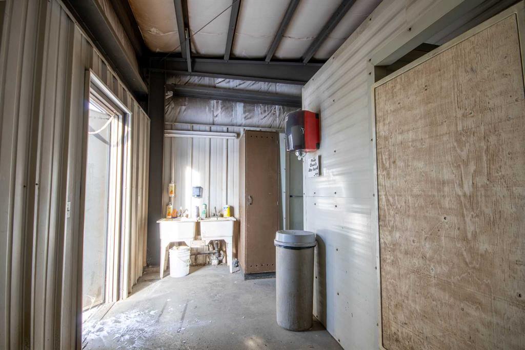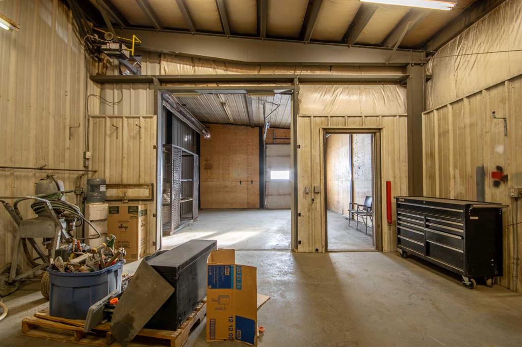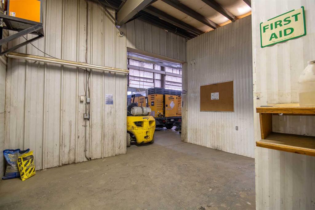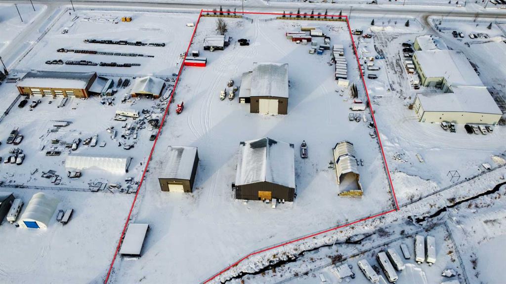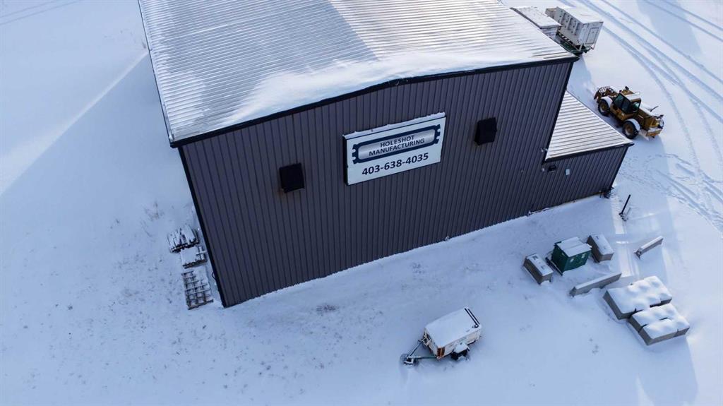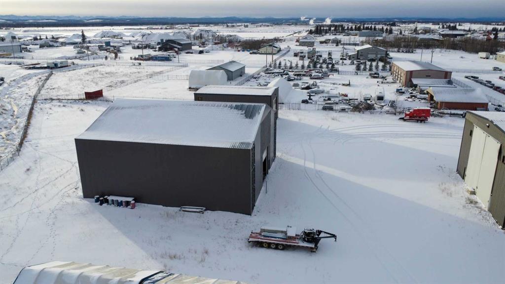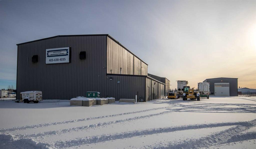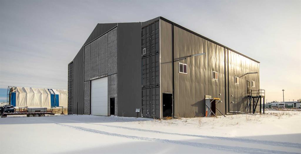 For Sale · 4.74+/- Titled Acres in a fenced & gated industrial parcel just west of Sundre, AB. Property boasts a 7,440 +/- sq ft heated Shop #1 with an attached axillary building that has a washroom, utility room, office, & mechanical bay. Building has 4 (20’x20’ doors) & 1 (30’x30’ door) on south end & an overhead crane. Property has an administrative office,which is 1579 +/- sq ft & contains 6 office spaces, meeting room, reception area, print area, staff lounge & washroom. There are two other large shops on property. Shop #2 is +/- 2400 sq ft & has 2 (20’x20’ doors) & is not presently heated, it also has an overhead crane. Shop #3 is formed by 12 sea cans utilized as sidewalls & is +/- 4800 sq ft plus +/- 1280 sq ft in 3 tiers of seacans & is not heated. One sea can is accessible from the interior of building & two are accessible from west side of building. The other sea cans are only accessible from end doors. There is also a concrete block & containment area, which is about +/- 1440 sq ft. suitable for storing shavings, soil, or equipment. Opportunity & entrepreneurism awaits. Potential for leasing.