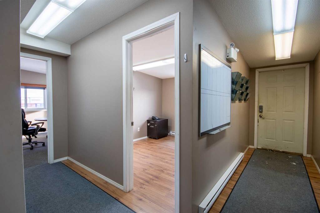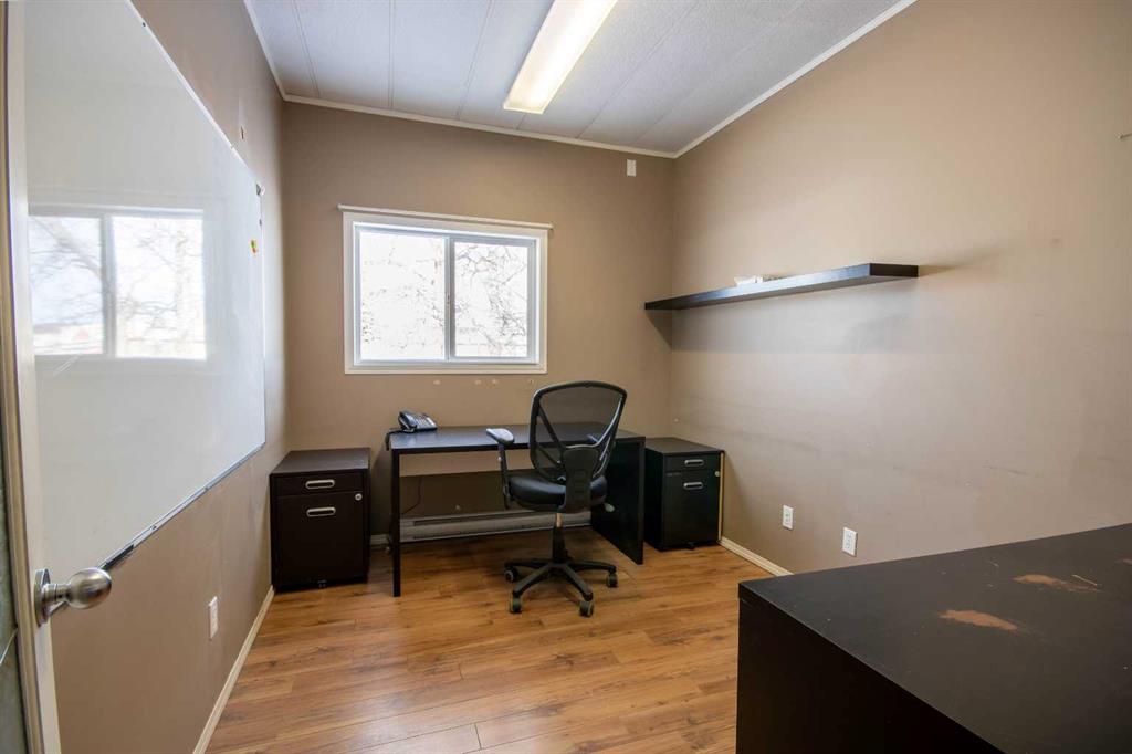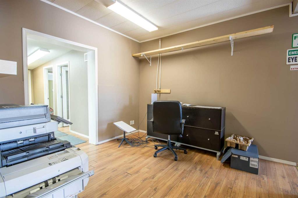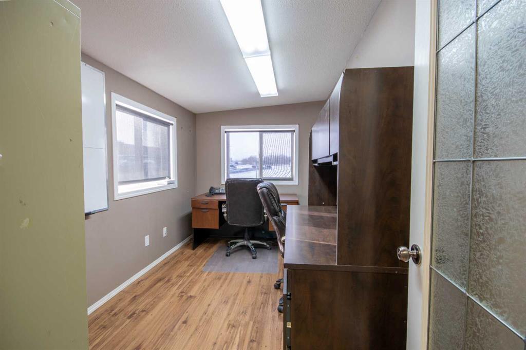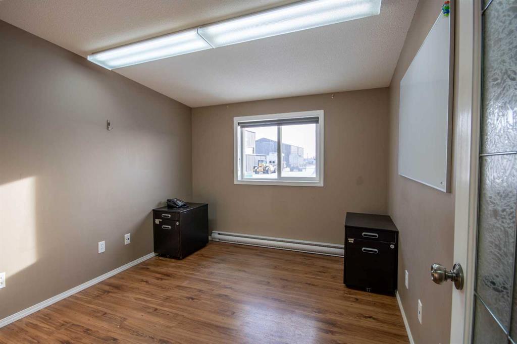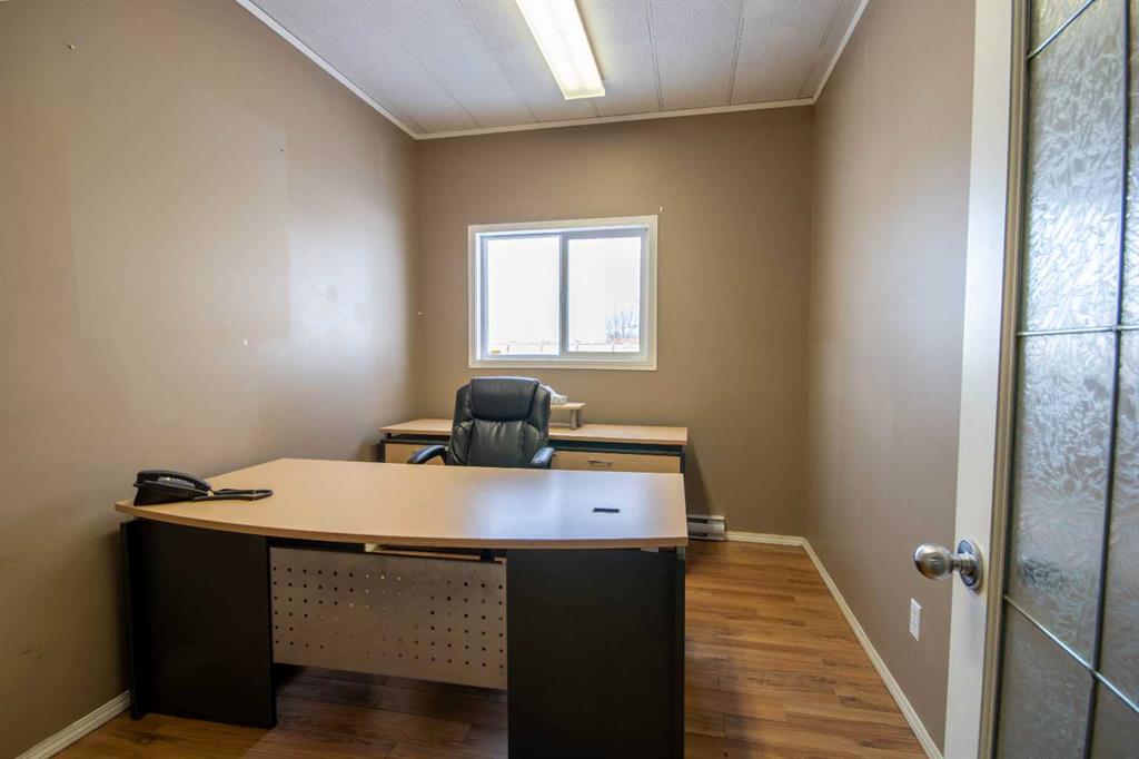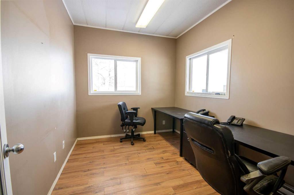For Sale · 4.74+/- Titled Acres in a fenced & gated industrial parcel just west of Sundre, AB. Property boasts a 7,440 +/- sq ft heated Shop #1 with an attached axillary building that has a washroom, utility room, office, & mechanical bay. Building has 4 (20’x20’ doors) & 1 (30’x30’ door) on south end & an overhead crane. Property has an administrative office,which is 1579 +/- sq ft & contains 6 office spaces, meeting room, reception area, print area, staff lounge & washroom. There are two other large shops on property. Shop #2 is +/- 2400 sq ft & has 2 (20’x20’ doors) & is not presently heated, it also has an overhead crane. Shop #3 is formed by 12 sea cans utilized as sidewalls & is +/- 4800 sq ft plus +/- 1280 sq ft in 3 tiers of seacans & is not heated. One sea can is accessible from the interior of building & two are accessible from west side of building. The other sea cans are only accessible from end doors. There is also a concrete block & containment area, which is about +/- 1440 sq ft. suitable for storing shavings, soil, or equipment. Opportunity & entrepreneurism awaits. Potential for leasing.