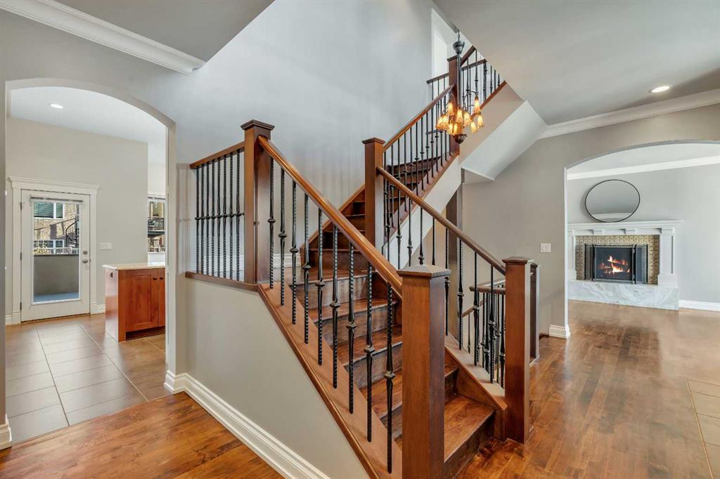 Timeless Craftsman-style charm meets thoughtful design in this beautiful custom built two-storey home that exudes warmth and character throughout. A grand open staircase and gleaming hardwood floors greet you upon entry, creating an immediate impression of elegance and setting the tone for the home’s classic appeal. The front formal living room showcases a stunning wood-burning fireplace framed by a traditional mantel and hearth. Adjacent to the living room, the formal dining area features sliding glass doors that open to the backyard, ideal for seamless indoor/outdoor entertaining. The kitchen is both stylish and functional, with granite countertops, full-height neutral cabinetry, a contrasting wood island, and a bright breakfast nook. On the main floor, the spacious primary bedroom offers the convenience of single level living, complete with a walk-in closet, private ensuite, and direct access to the back deck. Upstairs, two generous bedrooms sit on opposite sides of a large open den, providing a versatile space for a home office, family lounge, or creative studio. Beautiful hardwood floors flow throughout, and each light fixture has been thoughtfully selected to reflect old world European charm. The basement is partially finished, offering excellent potential for future development. Outside, you’ll appreciate the grandeur of the nearly 7,000 square foot lot, beautifully landscaped for both beauty and function. The backyard is a true private retreat, featuring an oversized deck, gas fireplace, raised garden beds, and an irrigation system to keep your lawn and plants thriving.
