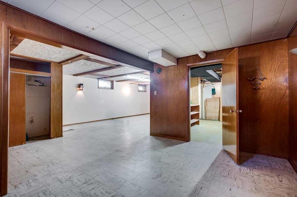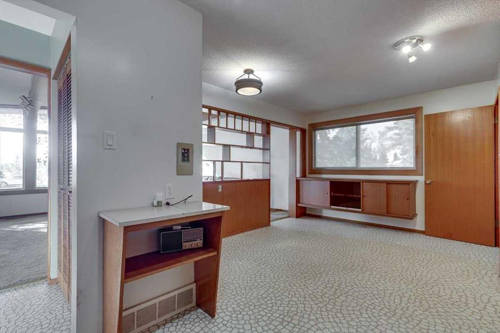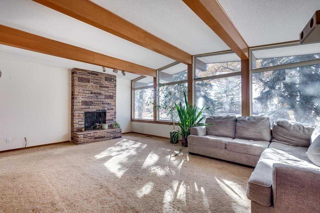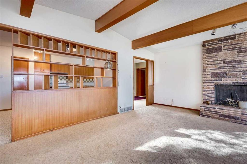 Set on a huge, tree-lined lot in the heart of Olds, this mid-century bungalow pairs unmistakable architectural character with outstanding renovation potential. Vaulted beam ceilings and walls of windows fill the grand living room with light, highlighting the full-height brick wood-burning fireplace creating a true focal point for family gatherings. Exposed wood detailing and built-in cabinetry echo timeless 1960s craftsmanship, lending warmth and personality rarely found today. Clear sightlines connect the spacious living area to the dining room and kitchen, where generous cabinetry, vintage tilework and a built-in desk create a highly functional space ready for a modern refresh. 3 comfortable bedrooms complete the main level, including a primary retreat with walk-in closet, private 1-piece ensuite (no more stumbling down the hall in the middle of the night!) and direct access to the backyard deck, perfect for quiet morning coffees. The lower level, accessible through a separate entrance, expands the possibilities with a large recreation room framed by wood beams and exposed brick, offering the ideal backdrop for movie nights, game tables or casual gatherings. A built-in wet bar adds convenience and character, making it easy to host friends or family, while a 3-piece bath and abundant storage enhance functionality for everyday living or future development. Outside, mature landscaping and towering evergreens provide shade and privacy around an oversized patio ideal for barbecues or evening relaxation. Kids and pets will love the expansive yard with endless space to play, while a man door connects directly to the oversized double-attached garage featuring 2 bay doors and room for tools, hobbies and vehicles. Extra driveway parking easily accommodates guests plus there’s room to the side for an RV. Combining small-town atmosphere with city-level amenities, Olds offers everything from local boutiques and cafés to major retailers like Walmart, Canadian Tire and Staples, plus a modern hospital, multiple schools and Olds College’s vibrant campus. Whether you’re an investor seeking a renovation project, a first-time buyer ready to build equity or a homeowner drawn to mid-century design, this property delivers space, character and opportunity in one of Mountain View County’s most welcoming communities!