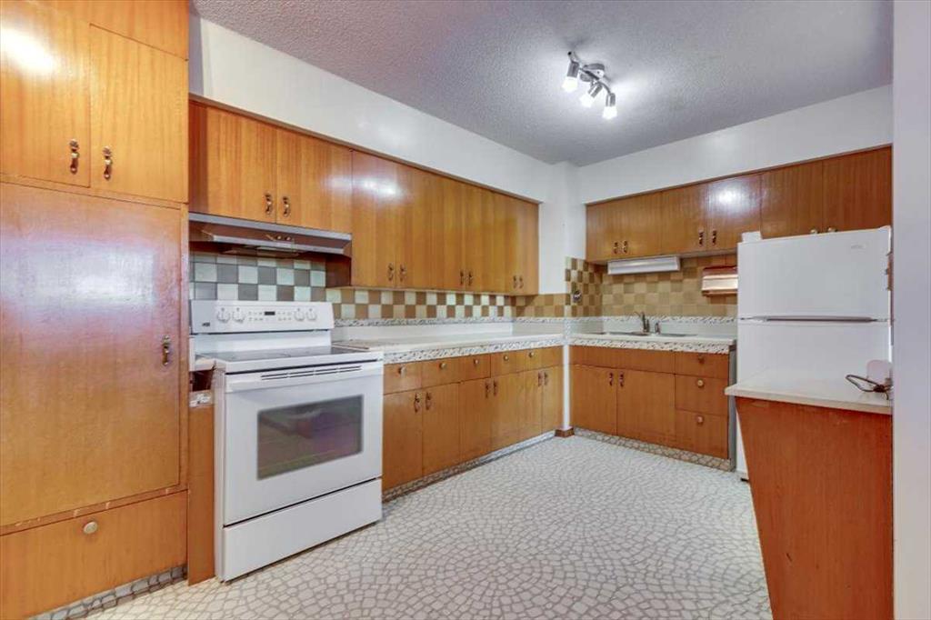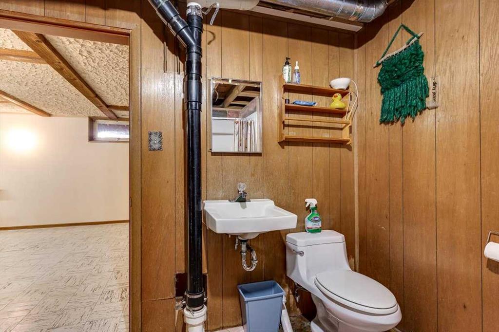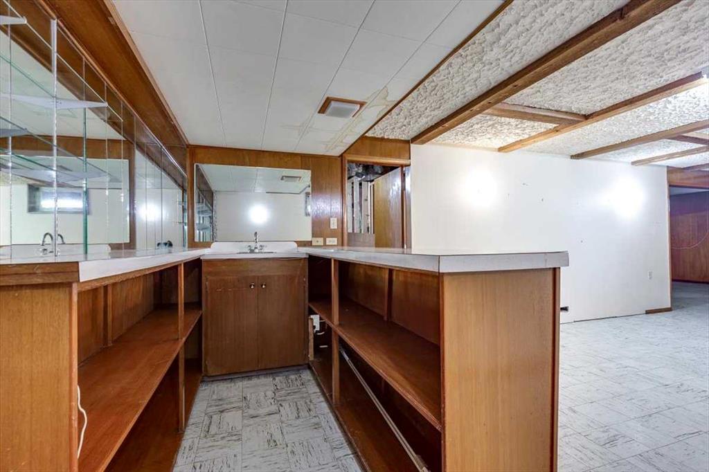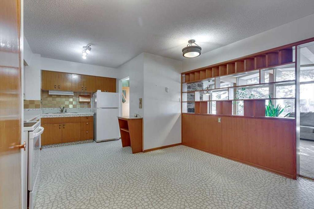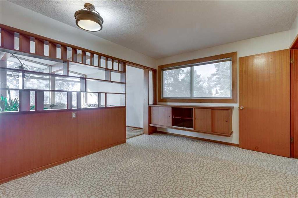 Set on a huge, tree-lined lot in the heart of Olds, this mid-century bungalow pairs unmistakable architectural character with outstanding renovation potential. Vaulted beam ceilings and walls of windows fill the grand living room with light, highlighting the full-height brick wood-burning fireplace creating a true focal point for family gatherings. Exposed wood detailing and built-in cabinetry echo timeless 1960s craftsmanship, lending warmth and personality rarely found today. Clear sightlines connect the spacious living area to the dining room and kitchen, where generous cabinetry, vintage tilework and a built-in desk create a highly functional space ready for a modern refresh. 3 comfortable bedrooms complete the main level, including a primary retreat with walk-in closet, private 1-piece ensuite (no more stumbling down the hall in the middle of the night!) and direct access to the backyard deck, perfect for quiet morning coffees. The lower level, accessible through a separate entrance, expands the possibilities with a large recreation room framed by wood beams and exposed brick, offering the ideal backdrop for movie nights, game tables or casual gatherings. A built-in wet bar adds convenience and character, making it easy to host friends or family, while a 3-piece bath and abundant storage enhance functionality for everyday living or future development. Outside, mature landscaping and towering evergreens provide shade and privacy around an oversized patio ideal for barbecues or evening relaxation. Kids and pets will love the expansive yard with endless space to play, while a man door connects directly to the oversized double-attached garage featuring 2 bay doors and room for tools, hobbies and vehicles. Extra driveway parking easily accommodates guests plus there’s room to the side for an RV. Combining small-town atmosphere with city-level amenities, Olds offers everything from local boutiques and cafés to major retailers like Walmart, Canadian Tire and Staples, plus a modern hospital, multiple schools and Olds College’s vibrant campus. Whether you’re an investor seeking a renovation project, a first-time buyer ready to build equity or a homeowner drawn to mid-century design, this property delivers space, character and opportunity in one of Mountain View County’s most welcoming communities!