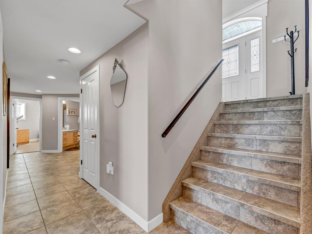 You can have it ALL... Country living, 3km paved from the City. Fully developed 3339 sq.ft. beautiful, modern bi-level built ICF construction to the roof. Geothermal heated, City water. The home has 4 bedrooms, a main floor office, 3 full bathrooms and a triple garage. Infloor heating and efficient home. Massive Quonset - 50x120, as well as 2 sheds. A total of 5.29 beautiful acres of low maintenance, private, picturesque yard with a garden, fruit trees and grassland for any animals or hobbies. The possibilities are endless with this rare find!