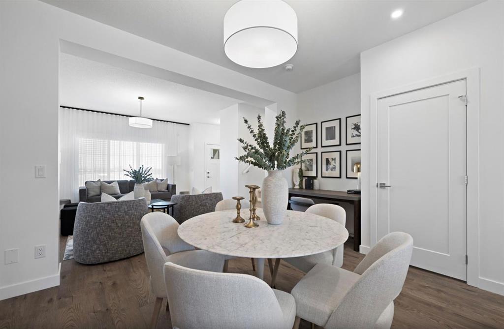 This beautifully designed home by TRUMAN pairs contemporary architecture with refined finishes and meticulous attention to detail, offering a rare opportunity to own in Lewisburg—one of Calgary’s newest and most thoughtfully planned communities. With three spacious bedrooms and a bright, open-concept floor plan, this home is crafted for modern living without compromise. At the rear of the home, the chef-inspired kitchen is as functional as it is stylish—featuring full-height cabinetry with soft-close doors and drawers, elegant quartz countertops, a premium stainless steel appliance package, and a generous pantry to keep everything organized. The main floor impresses with soaring 9' ceilings and durable luxury vinyl plank flooring, creating a seamless flow between the living and dining areas—perfect for both everyday living and entertaining. Upstairs, the primary suite offers a private retreat with a walk-in closet and a sleek 3-piece ensuite. Two additional bedrooms provide versatile space for children, guests, or a home office, while a 4-piece main bath and convenient upper-level laundry with included washer and dryer make daily life effortless. The unfinished basement with a separate side entrance is a rare and valuable feature, offering endless potential. Life in Lewisburg means enjoying a community that blends tranquility with connectivity. Surrounded by parks, pathways, and green spaces, it invites an active, outdoor lifestyle while keeping you close to major routes, shopping, and city amenities. *Photo gallery of similar home*