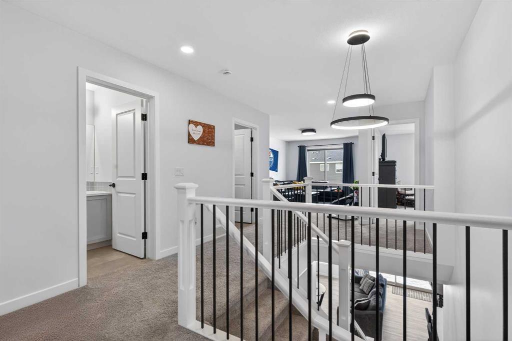Looking for the perfect home for your family? Well you’ve found it in this beautifully crafted two storey in the popular Airdrie community of Bayside, located here on this quiet crescent within walking distance to neighbourhood parks, ponds & the canals. Built by McKee Homes for the original owners, this wonderful home enjoys luxury vinyl plank floors & quartz countertops, total of 4 bedrooms up, relaxing central air & fantastic outdoor space in the fully fenced & landscaped West backyard. With its 9ft ceilings & expanse of windows, you’ll love the bright & airy main floor with its gracious living room with remote-controlled gas fireplace & beamed ceilings, open concept dining room with views of the backyard, home office alcove & custom kitchen with centre island & quartz counters, butlers & walk-in pantry, ceramic tile backsplash & upgraded stainless steel appliances including a Samsung gas stove/convection oven. Upstairs there are 4 lovely bedrooms highlighted by the West-facing primary bedroom with walk-in closet & ensuite with quartz-topped double vanities, separate shower & soaker tub. Another full bathroom is shared by the other 3 bedrooms…2 of which have walk-in closets. A spacious bonus room & laundry room with GE steam washer & dryer complete the 2nd floor. The unspoiled lower level – with roughed-in bathroom plumbing & oversized windows, offers tremendous potential for future living space. Additional features include Clean Comfort HVAC system & triple-pane windows, natural gas line for your BBQ on the backyard deck, garage door opener with built-in camera, adjustable LED lighting throughout, Ecobee thermostat & upgraded SMART appliances. As one of Southwest Airdrie’s premier family communities, Bayside features 100km of paved pathways winding throughout the neighbourhood & along picturesque canals & ponds, with numerous parks & playgrounds for year-round activities. Nose Creek Elementary & W.H. Croxford High are both just minutes away, & with its prime location to Yankee Valley Blvd means all regional amenities are close-by (Chinook Winds Regional Park, Genesis Place, retail centers, Woodside Golf Course, etc) & you’ve got quick & easy access to the QEII to Cross Iron Mills, the airport & Calgary.
