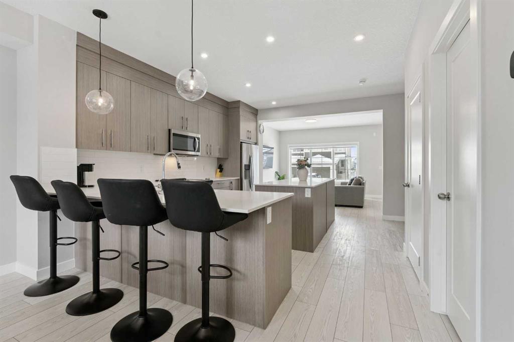 Welcome to this exceptional duplex, essentially brand new and never lived in, having only been utilized for short-term Airbnb rentals over the past year. Enjoy a fantastic main floor layout featuring ample counter space and a dual island, perfect for entertaining, complemented by elegant finishes such as recessed ceilings and luxurious quartz countertops. The upper floor boasts a rare bonus room, a spacious primary bedroom with a 4-piece ensuite and a generous walk-in closet, plus two additional bedrooms that offer versatile options for use—ideal as children's rooms, home offices, or creative workspaces—along with an additional 4-piece bathroom. The unfinished basement, featuring a separate entrance and zoned for potential revenue generation, can be transformed into a rental suite subject to approval and permitting by the city/municipality, multi-generational living space, or additional living area. The property includes a double detached garage. It is conveniently located with equal access to Chestermere and Calgary, as well as East Hills. Once completed, the community will feature a 15-acre eco-reserve with natural wetlands, 5 km of pathways, 4 modern playgrounds, and multi-use playfields—all within walking distance to schools, retail shops, and commercial spaces. Don’t miss out on this unique opportunity to own a versatile and beautifully designed home in a thriving community!