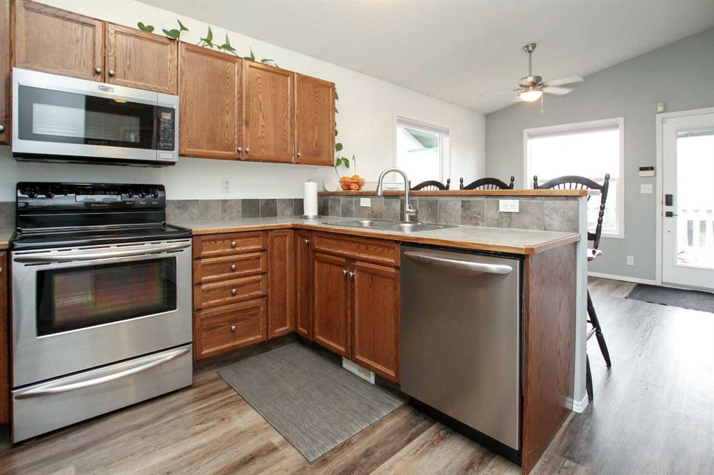 FULLY DEVELOPED BI-LEVEL ~ 4 BEDROOMS, 2 BATHROOMS ~ FULLY FENCED WEST FACING BACKYARD ~ GATED RV PARKING ~ Beautifully landscaped front yard offers eye catching curb appeal ~ Covered front entry leads to a sun filled foyer with high ceilings and a built in bench with shelving ~ Vaulted ceilings in the main living space offers a feeling of spaciousness ~ The living room is a generous size and features large windows that fill the space with natural light ~ The kitchen offers plenty of warm stained oak cabinets, ample counter space, tile backsplash, wall pantry and an eating bar ~ The dining room has more large windows that fill the space with natural light, plus garden door access to the sunny west facing deck with enclosed storage below ~ Two main floor bedrooms are both a generous size and are separated by the conveniently located main floor bathroom ~ The fully finished basement with large above grade windows offers a massive family room, 2 bedrooms, a 4 piece bathroom with a jetted soaker tub, laundry and space for storage ~ The backyard is landscaped, fully fenced with back alley access, has enclosed storage below the deck and gated RV parking ~ Located close to multiple schools, parks, green space, walking trails, shopping and all other amenities close by ~ Move in ready!