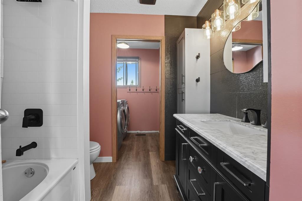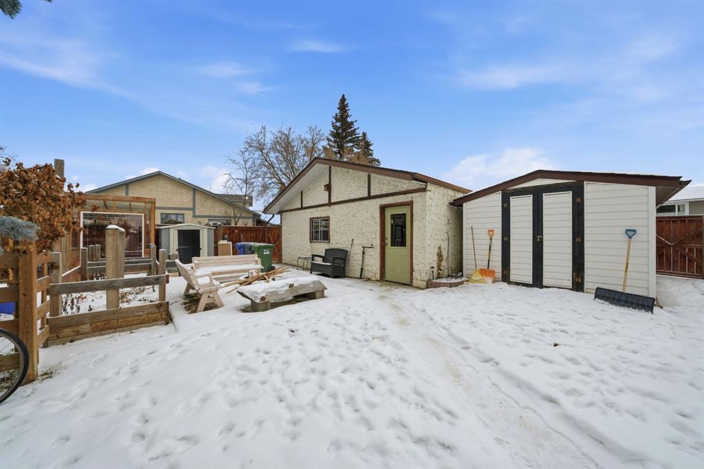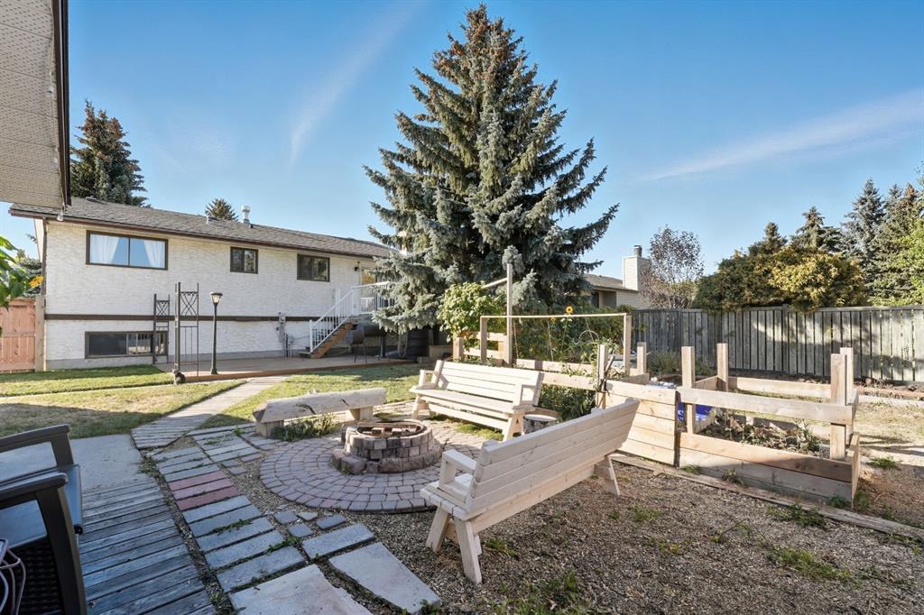 This spacious and inviting property sits on a large corner lot in one of Red Deer’s most established, family-friendly communities Morrisroe. Step inside to find an abundance of natural light pouring through the large front windows, highlighting the generous main living area—perfect for family gatherings or quiet evenings in. The kitchen offers plenty of workspace with a central island, ample cabinetry, and great flow for everyday cooking or entertaining. Upstairs features two comfortable bedrooms, a full 4-piece bath, and the convenience of main-floor laundry. The freshly painted fully finished basement adds incredible versatility, complete with two additional bedrooms, a 3-piece bath with walk-in shower, and a huge recreation area—ideal for movie nights or game days. Step outside through the sliding doors onto the expansive deck overlooking a beautifully landscaped yard. Enjoy evenings around the fire pit or tend to your raised garden boxes and flower beds—this yard is a true gardener’s dream. Additional highlights include a large heated garage, front driveway parking, two storage sheds, a newer hot water tank (2022), and a brand-new furnace for added peace of mind. Full of charm, functionality, and outdoor space, this is the perfect home for those seeking comfort and character in a wonderful neighbourhood. Disclaimer; Photos are virtually staged.