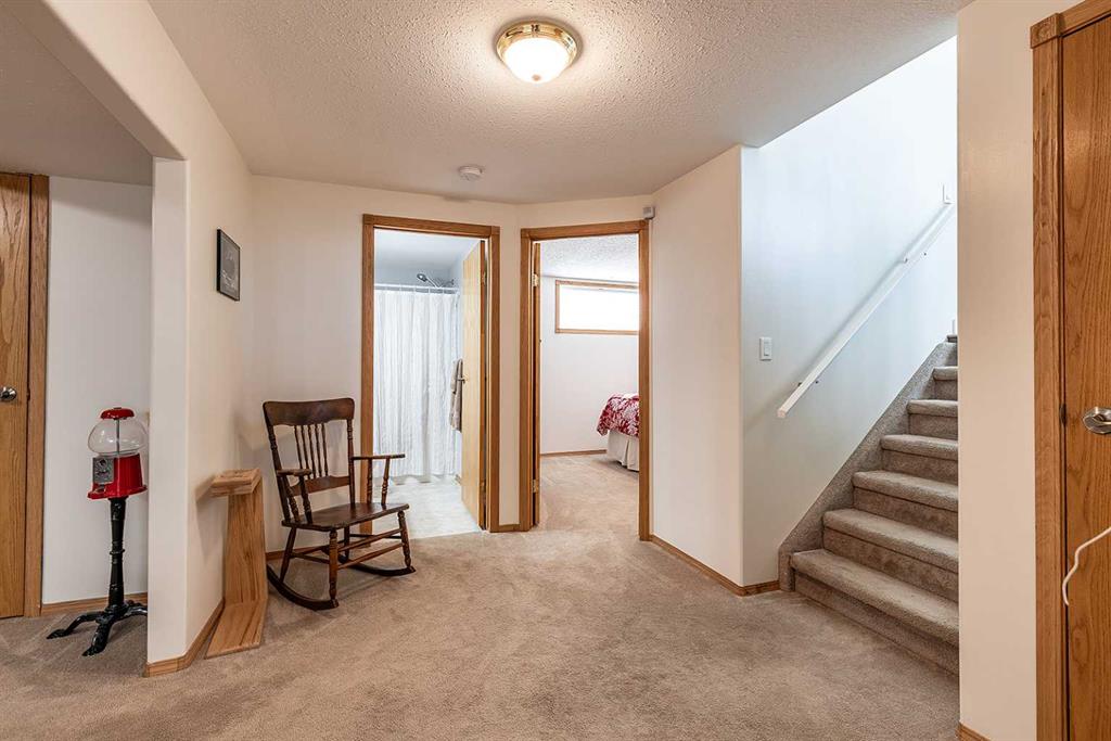 Welcome to this move-in ready bi-level located in a quiet court just steps from Dr. Ken Sauer Elementary School — an ideal setting for families! Offering 4 bedrooms, 3 bathrooms, a double attached garage, and an incredible 19x25 heated shop, this property truly checks all the boxes. The main floor features a bright and spacious front living room with a huge picture window and a cozy gas fireplace, flowing into the generous dining area. The functional kitchen offers a corner pantry, newer stove, and convenient access to the covered back deck and yard — perfect for year-round enjoyment. You’ll also find two good-sized bedrooms on this level, including the primary suite with a walk-in closet and 4-piece ensuite, plus an additional full bathroom. The lower level is bright, welcoming, and thoughtfully laid out with a massive rec room, dedicated gym space, two more bedrooms, another full 4-piece bathroom, and an adorable laundry room complete with sink and extra storage. This home has seen extensive updates and is truly turn-key, including fresh paint throughout, newer flooring, updated baseboards and trim, new countertops and bathroom tile flooring, newer blinds, new closet shelving, , a new fireplace, and newer HWT (2021). The fully permitted and inspected 19x25 shop is a standout feature — heated, insulated, finished with epoxy floors, and equipped with an exhaust fan for welding or painting, making it perfect for hobbyists, mechanics, or additional workspace. With tons of storage, a fantastic layout, and a prime location, this home offers exceptional value and versatility.