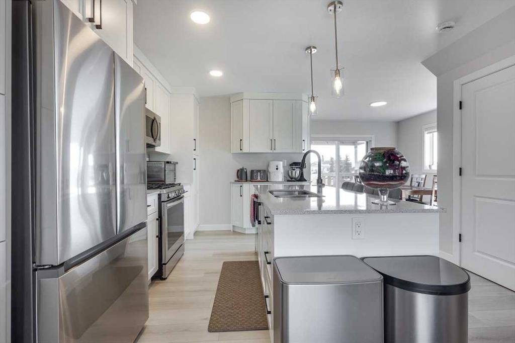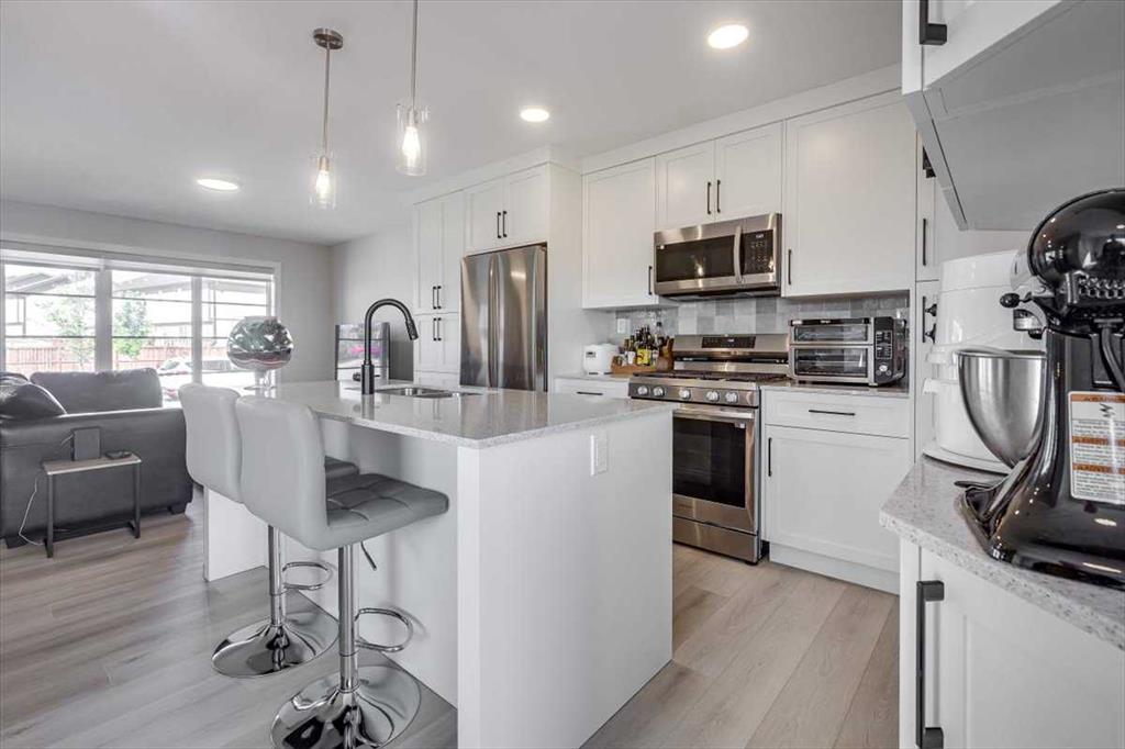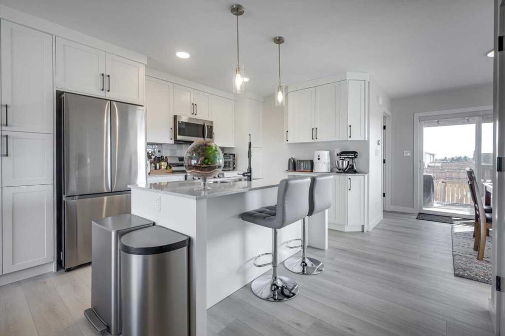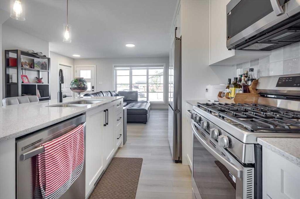 Immaculately maintained END unit with no Condo/Association Fees siding greenspace! Pride of ownership is on display in this nicely updated home with many recently added features such as a custom pantry and extra bank of cabinets, fenced off back yard with space left at the rear for 2 vehicles to park, a covered porch, custom high end window coverings, upgraded thermostat and bathroom timers, smart door lock, and so much more. AC, UV air purification and water softener added in 2025. The main level is open concept with modern finishes, consisting of a generous living room, a beautiful white kitchen with quartz countertops and a separate large dining room. The large windows flood the main level with natural light and show off the beautiful views of the greenspace the home backs/sides onto. The 2nd level is also bright and airy, consisting of 3 bedrooms and 2 bathrooms, including a gorgeous en-suite off of the master bedroom. The basement, while unfinished, has had drywall added to close off exposed studs and insulation, plus electrical outlets and floor painted throughout. Less than a 15 minute walk, or a 4 minute bike ride to the Abbey Centre, this home is ideally located near parks, schools, shopping.