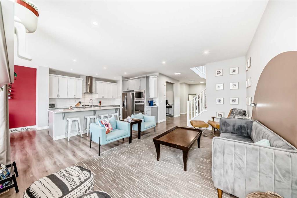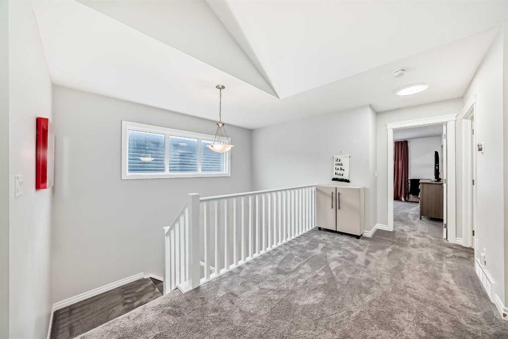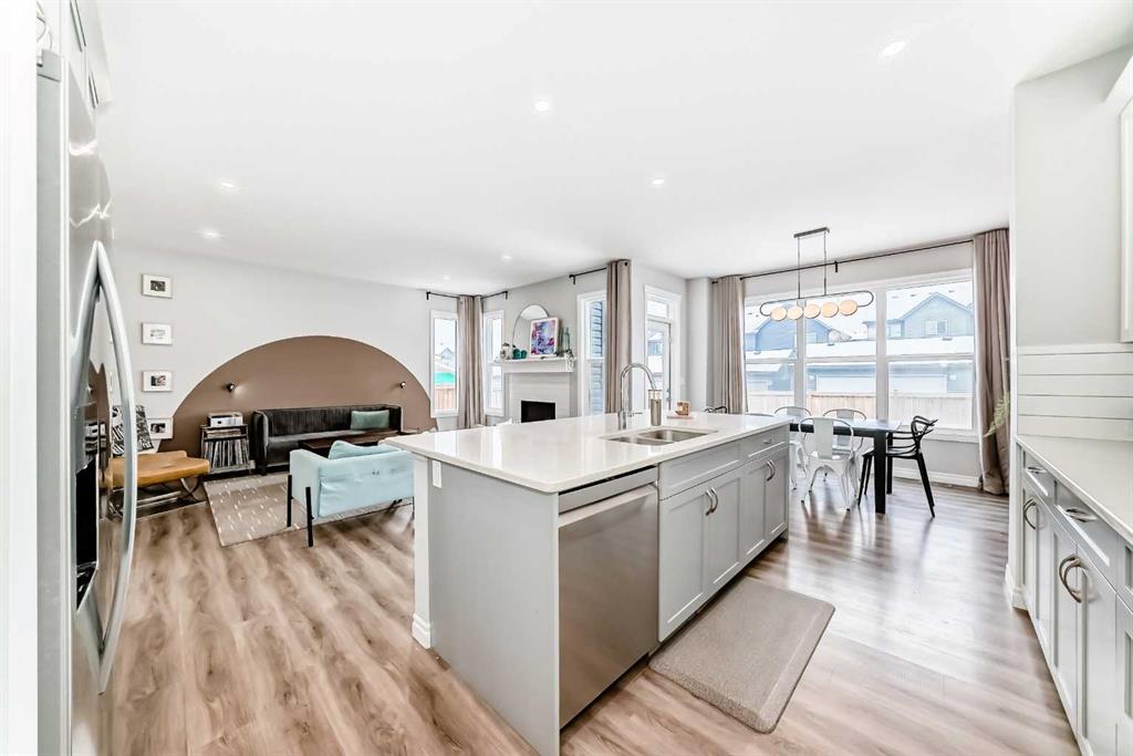 Welcome to your dream home in the vibrant and growing community of Belmont SW! This beautifully appointed 2,500 sq. ft. of total living space home offers the perfect blend of luxury, comfort, and functionality — ideal for families, professionals, and anyone looking for a well-designed space to call home. This exceptional home features a south-facing backyard, double attached garage, and air conditioning, with an open-concept main floor showcasing 9-foot ceilings, a gas fireplace, and large windows for abundant natural light; the gourmet kitchen includes a spacious island, quartz countertops, gas cooktop, built-in oven and microwave, and a walk-through pantry off the mudroom, while a main floor office provides the perfect workspace — upstairs, enjoy an oversized bonus room with 14-foot vaulted ceilings and a spa-like primary suite with double sinks, and a walk-in closet connected to the laundry room and 2 additional generous size bedrooms. The undeveloped basement with 9-foot ceilings and large windows offers a great space for the kids to play or finish to your liking. Outside, a deck with gas hook-up is perfect for entertaining and fully fenced backyard with paved back alley access, and a new roof/siding (2022) complete the package. Don't miss this amazing opportunity! Call your favorite Realtor and book a showing today!