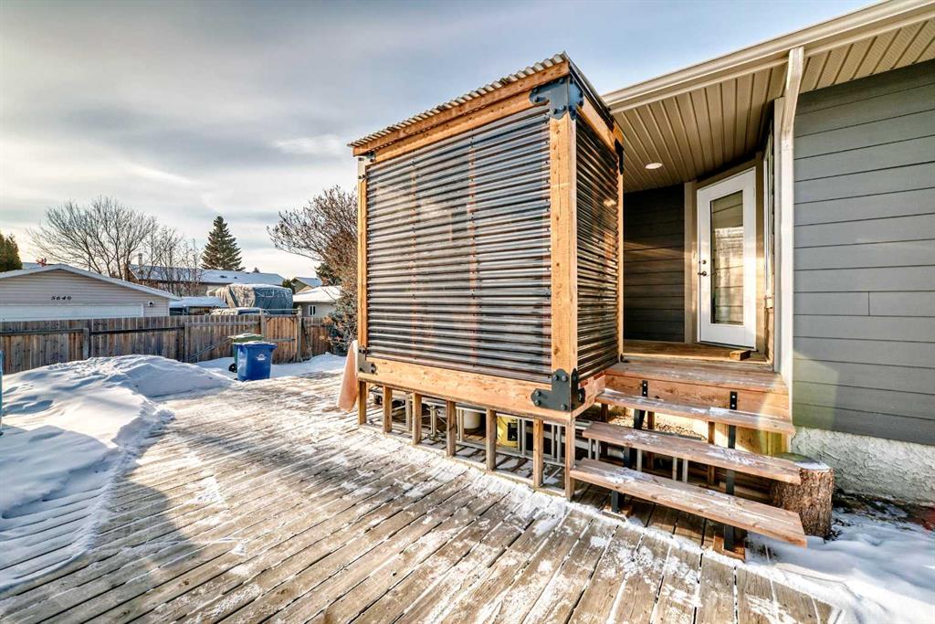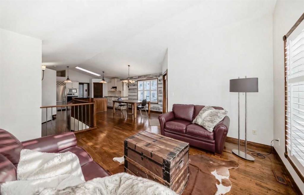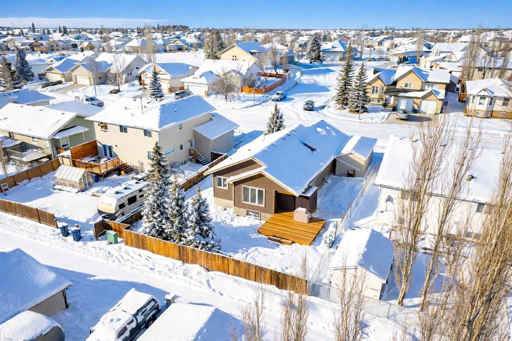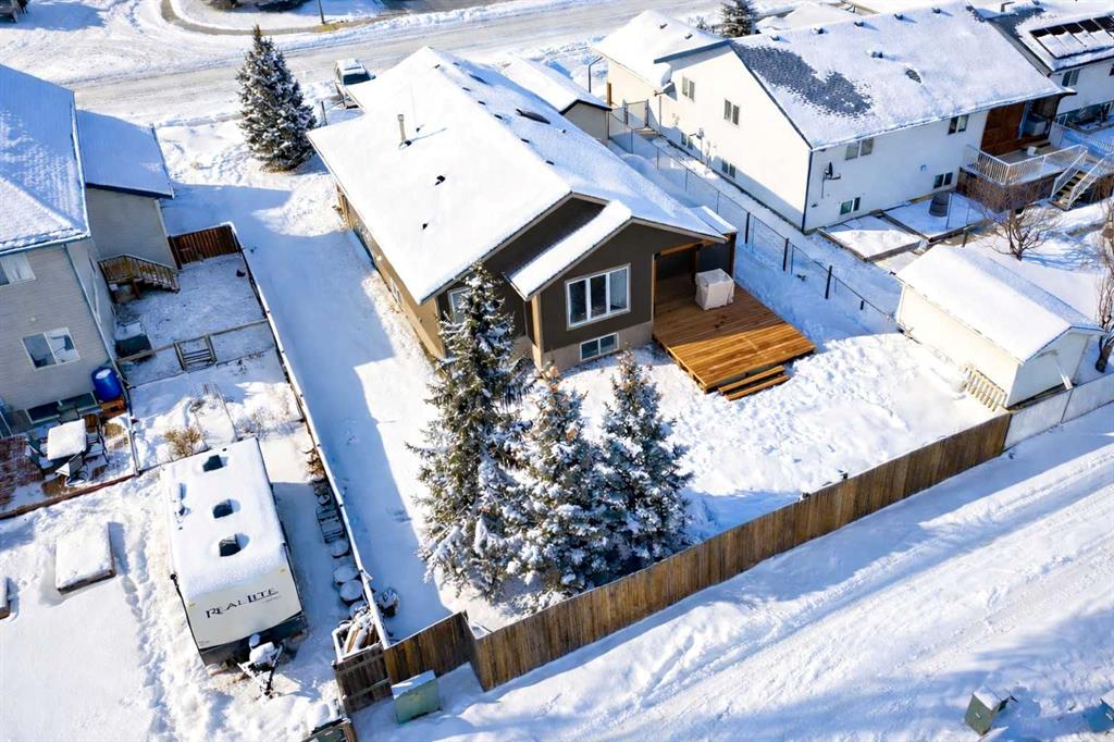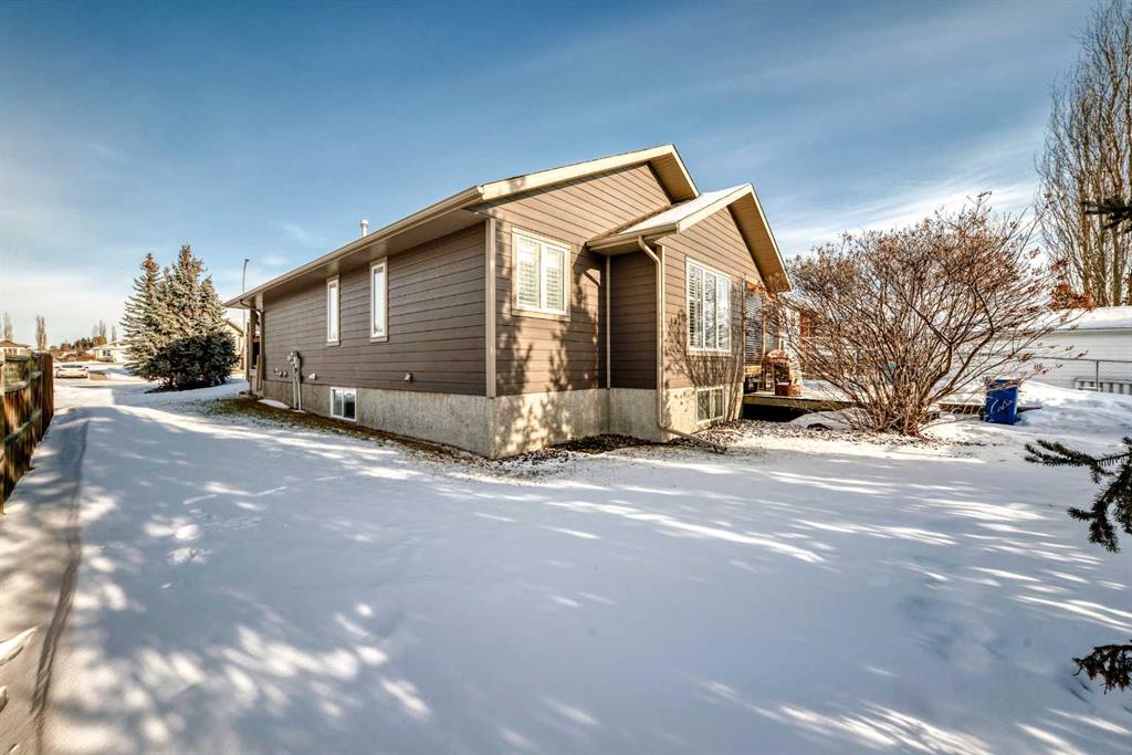 Located in a desirable area of Innisfail, close to parks, playgrounds, walking paths, and schools - this beautifully fully finished bungalow showcases quality construction and thoughtful upgrades throughout. The bright, open-concept main floor features rich hardwood flooring and ceramic tile, creating a welcoming and functional living space, complete with a unique brick faced wall adding warm and charm. The kitchen is both stylish and practical, offering uniquely finished wash-tone cabinetry, a skylight that fills the space with natural light, and sleek stainless steel appliances for a timeless, upscale look. Most windows are fitted with custom-made blinds for added comfort and privacy. The spacious primary bedroom includes a recently updated 4-piece ensuite, perfect for unwinding at the end of the day. Laundry hookups are conveniently located on BOTH levels, and a front phantom screen door adds everyday ease. The fully developed basement offers two additional bedrooms, a 4-piece bathroom, ample storage/laundry space, and a large family room complete with a corner gas fireplace featuring thermostatic control—ideal for cozy evenings. Enjoy the south-facing backyard, beautifully landscaped with mature trees and perennials, fully fenced for privacy. The two-tiered back deck is partially covered and wired for a hot tub, making it perfect for entertaining or relaxing outdoors. Additional highlights include an attached double garage and numerous thoughtful extras that reflect the exceptional care given to this home. A truly well-maintained property offering comfort, style, and value in a sought-after neighborhood. Pride of ownership is clearly evident throughout!