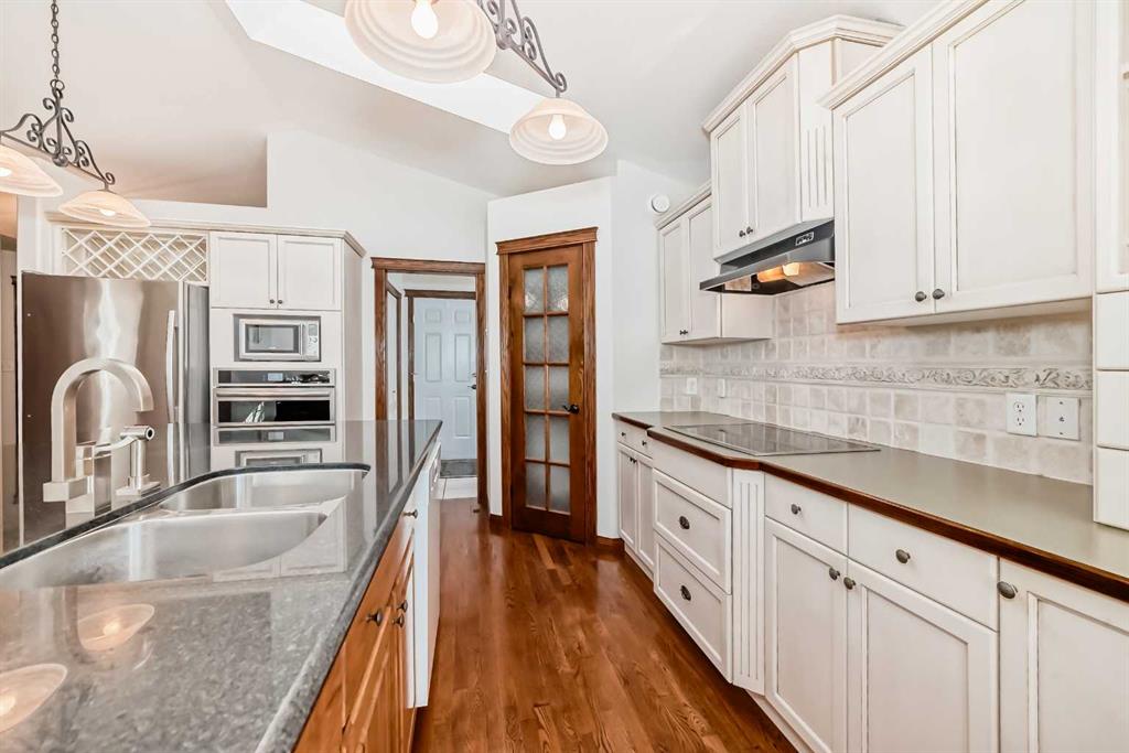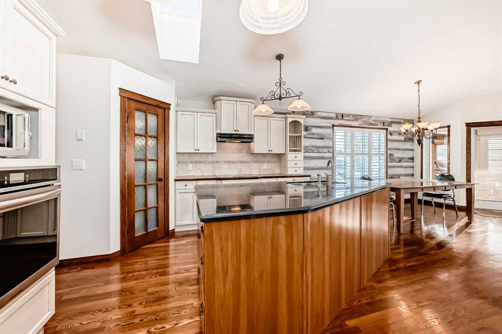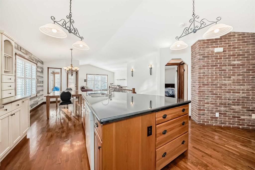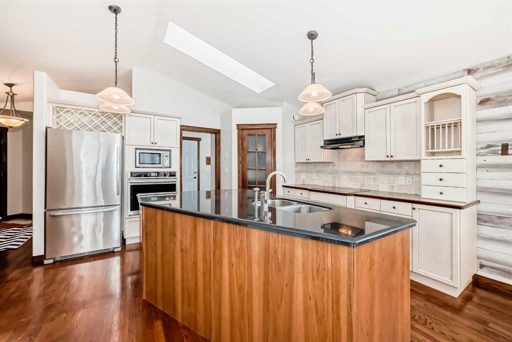 Located in a desirable area of Innisfail, close to parks, playgrounds, walking paths, and schools - this beautifully fully finished bungalow showcases quality construction and thoughtful upgrades throughout. The bright, open-concept main floor features rich hardwood flooring and ceramic tile, creating a welcoming and functional living space, complete with a unique brick faced wall adding warm and charm. The kitchen is both stylish and practical, offering uniquely finished wash-tone cabinetry, a skylight that fills the space with natural light, and sleek stainless steel appliances for a timeless, upscale look. Most windows are fitted with custom-made blinds for added comfort and privacy. The spacious primary bedroom includes a recently updated 4-piece ensuite, perfect for unwinding at the end of the day. Laundry hookups are conveniently located on BOTH levels, and a front phantom screen door adds everyday ease. The fully developed basement offers two additional bedrooms, a 4-piece bathroom, ample storage/laundry space, and a large family room complete with a corner gas fireplace featuring thermostatic control—ideal for cozy evenings. Enjoy the south-facing backyard, beautifully landscaped with mature trees and perennials, fully fenced for privacy. The two-tiered back deck is partially covered and wired for a hot tub, making it perfect for entertaining or relaxing outdoors. Additional highlights include an attached double garage and numerous thoughtful extras that reflect the exceptional care given to this home. A truly well-maintained property offering comfort, style, and value in a sought-after neighborhood. Pride of ownership is clearly evident throughout!
