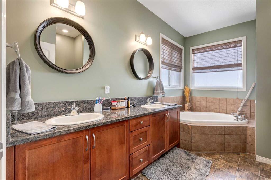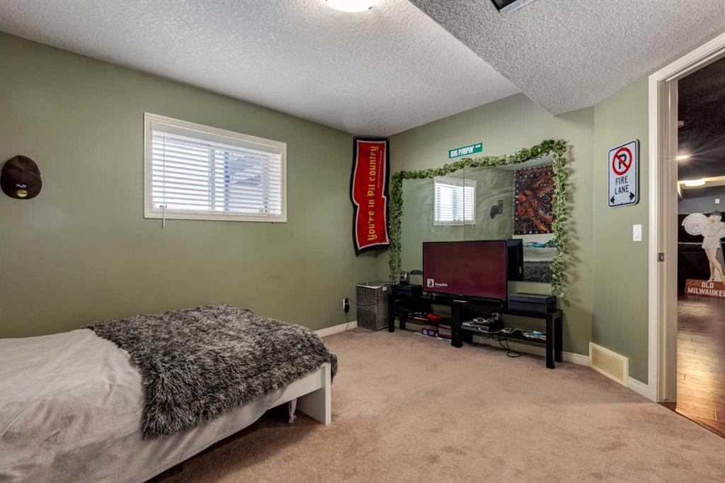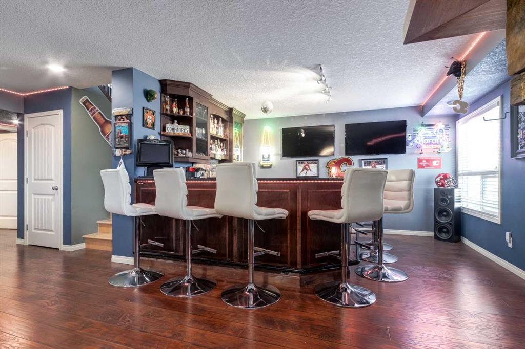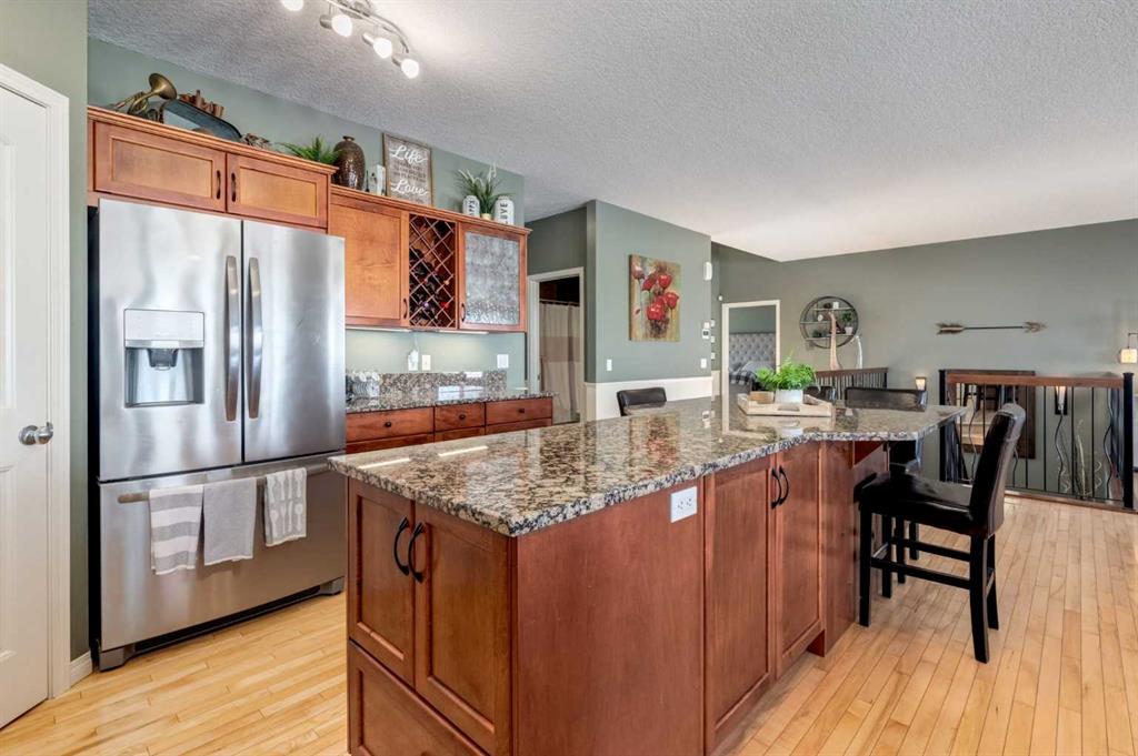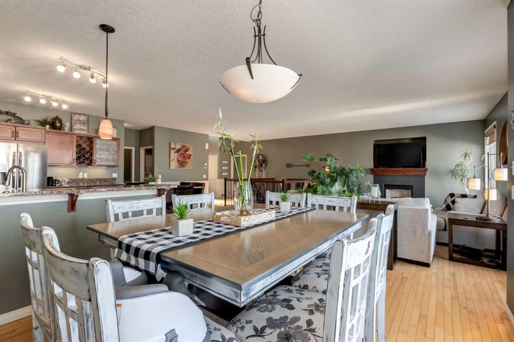 WALKOUT BUNGALOW on the GOLF COURSE!!!! Located perfectly on a quiet, family-friendly street and backing onto the Boulder Creek Golf Course, this home has it all. Pull up to this property and notice the beautifully landscaped property and your 3-CAR GARAGE! That pride of ownership carries into the house as you open the front door to stunning views of the golf course. The main level boasts an open concept, 9' ceilings and hardwood floors and a spacious executive kitchen with a large, functional island complete with eating bar for 4, a corner pantry , stainless appliances and lots of functional cabinetry. The living area has large sun-soaked windows and a cozy fireplace perfect for those cold winter nights. The primary suite is spacious and boasts a 5 pc ensuite with granite countertops and a generous walk-in closet. Your main level is finished off with a 2nd Bedroom/Den/Gym, another 4 pc bath, a large mud room and upstairs laundry. The walk-out basement is well-appointed and is the entertainer's dream and perfect for all those family gatherings. Large rec room & TV area, a DREAM BAR/ENTERTAINMENT area, large 3rd & 4th Bedrooms and another triple-sided fireplace. Enjoy your summer nights in the backyard at the firepit or in the hot tub as you stare at the star or watch the golfer walk by. The DREAM TRIPLE GARAGE is heated with EPOXY floors, full dog run, LED exterior lighting. This property is a must-see and perfect place to call home in Langdon!!!! OPEN HOUSE SATURDAY JAN 31ST 1:00-4:00!!