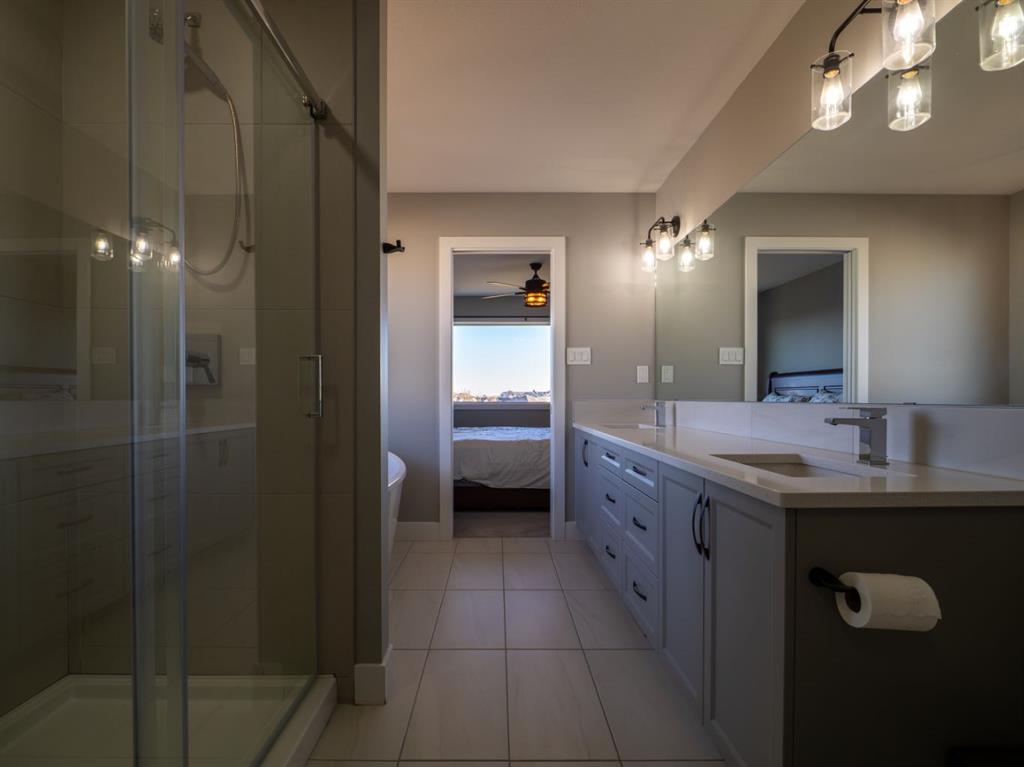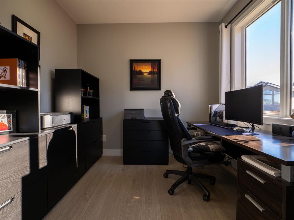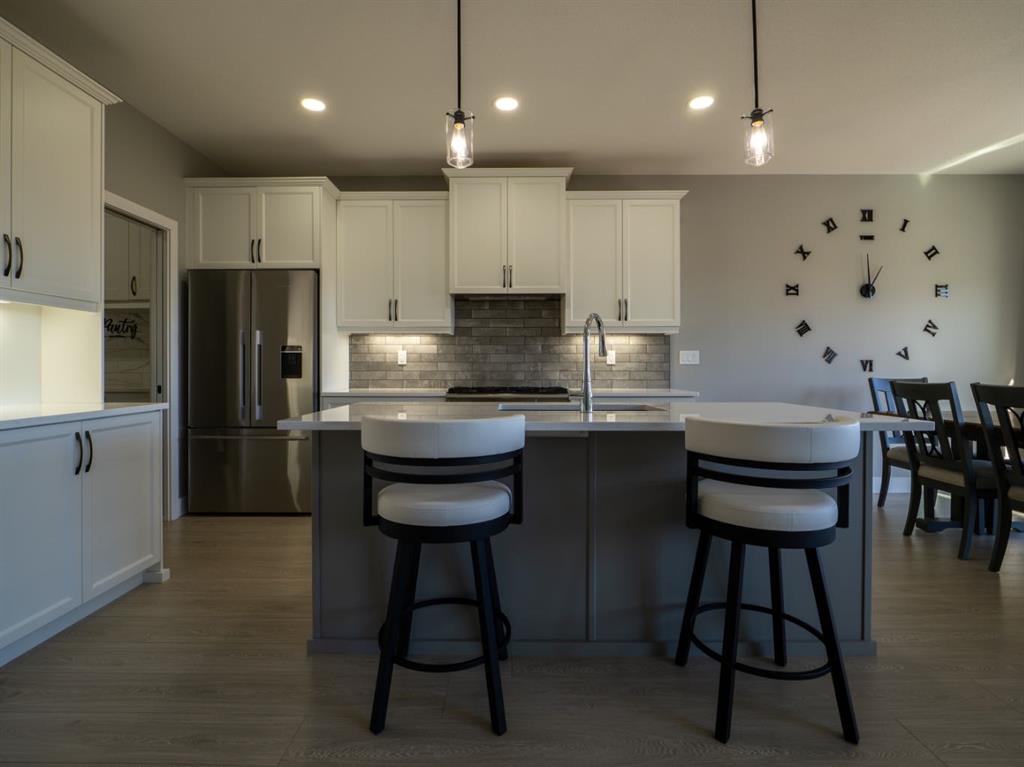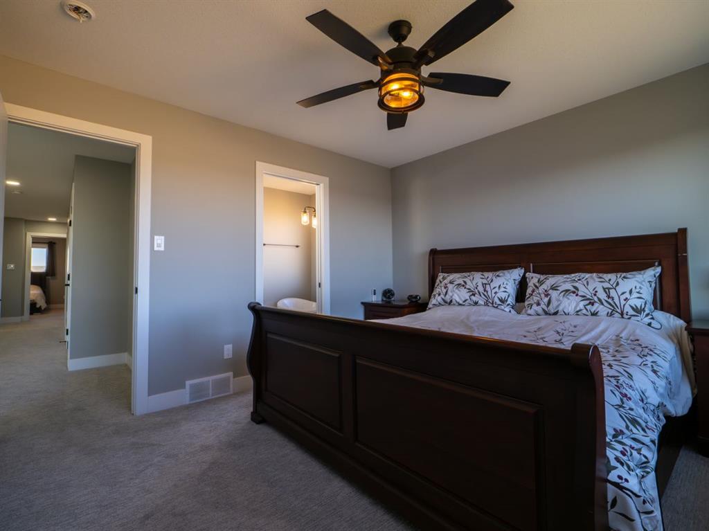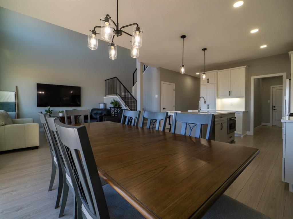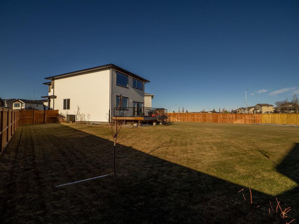 Welcome to 57 Goldenrod! Welcome to this beautiful West Lethbridge home, ideally located near shopping, the new west-side elementary school, parks, pathways, and an abundance of amenities. This property shows like new, with the added bonus of a fully finished basement and completed landscaping. The thoughtfully designed main floor features a spacious office, mudroom, pantry, and an open-concept living and dining area highlighted by soaring open-to-above ceilings. Expansive windows and patio doors flood the space with natural light and showcase views of the massive backyard, complete with a generous deck and plenty of room for outdoor activities. This level also provides access to the oversized double garage, offering 9’ overhead doors, over 12’ ceiling height, and a gas line already in place. Upstairs, the well-appointed primary suite includes a luxurious five-piece ensuite with a soaker tub, stand-alone shower, walk-in closet, and convenient access to the upper-level laundry room. Two additional bedrooms, a four-piece bathroom, and a bonus room perfect for family time complete the upper floor. The fully developed basement offers exceptional versatility, featuring a large recreation room, an additional spacious bedroom with its own ensuite, and laundry hookups. Homes of this caliber—on a lot of this size, with all finishing work already completed—are rare. This exceptional property is move-in ready and waiting for its new owners to enjoy everything it has to offer and truly call it home. Call your favourite REALTOR® today!