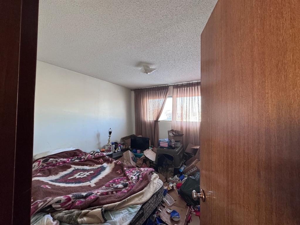 Located in a desirable Stettler neighborhood very close to schools, this corner-lot property offers an opportunity for buyers seeking a project or investment with future potential. The home features one bedroom on the main floor along with main-floor laundry. The lower level includes a living area, den and a half bath, providing additional space for storage, workspace, or flexible use. Outdoor features include a front deck and a covered back deck. A single attached garage and two sheds offer added storage and utility.