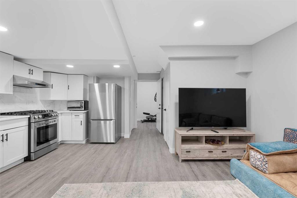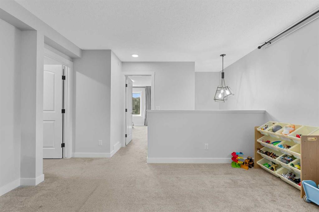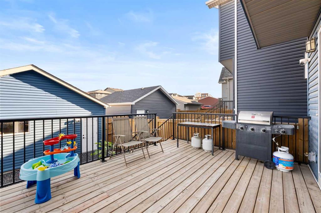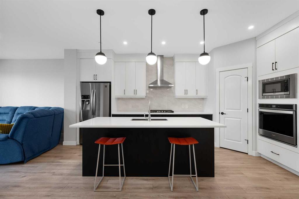 This home is perfect for a large family or for those seeking additional rental income. Located in the desirable community of Livingston, this two-storey home offers over 2,600 square feet of developed space, including a legal basement suite and an oversized double garage. Situated on a street with wider and larger lots than some in the area, this home is a must see. Upon entry, you're greeted by a spacious den or office, providing the flexibility for a quiet workspace or a guest room. The open-concept main floor is bathed in natural light, featuring oversized sliding doors that lead to the back deck. The generous living room flows seamlessly into the gourmet kitchen, which boasts ceiling-height white cabinetry, stainless steel appliances, and a large island topped with quartz countertops. Upstairs, a bonus room provides a dedicated space for kids or for relaxing at the end of the day. This level also includes two spacious bedrooms, a four-piece bathroom, and a convenient laundry room. The private primary suite features a four-piece ensuite and a walk-in closet. The legal basement suite offers a self-contained living space with a separate entrance. The bright suite includes a modern white kitchen with stainless steel appliances, a four-piece bathroom, and a bedroom. A bonus feature of the suite is its own furnace, allowing for ultimate climate control. Another bonus, a fire suppression system throughout the home, which will help with insurance costs! The backyard is designed for low-maintenance living and features a very large deck. The oversized double garage (22'x22') has an oversized door, providing ample space for large vehicles. As part of your HOA, you'll get access to the Livingston Hub, a community year round facility which includes a gymnasium, multi-use rooms, splash park, skating rinks, and much more. This home has been meticulously cared for and shows impeccably—book your showing today!