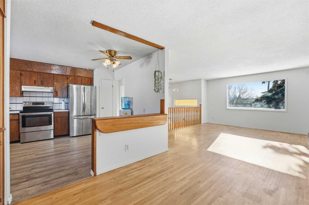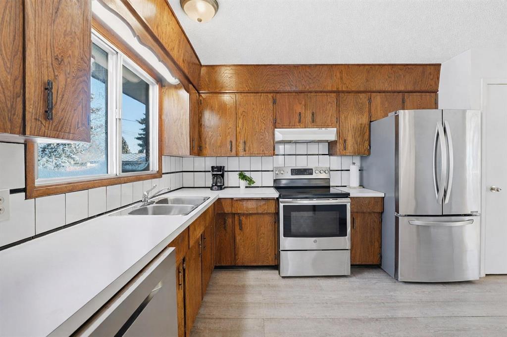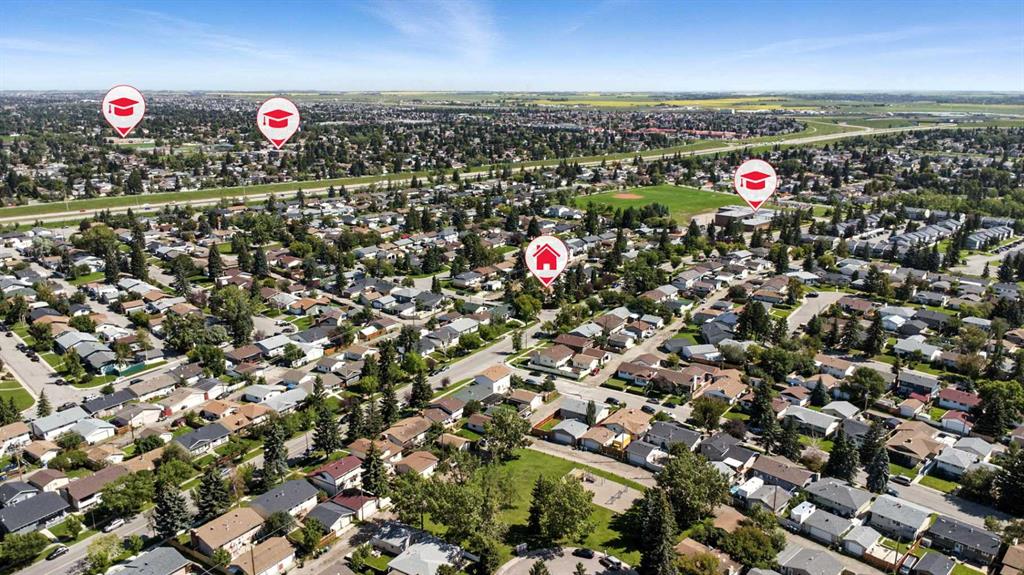 Welcome to this charming and versatile bi-level home featuring 4 spacious bedrooms and 2 full bathrooms. The main floor offers a beautifully updated kitchen with sleek stainless steel appliances and classic wood cabinetry. Natural light floods the open-concept living and dining areas, creating a warm and inviting atmosphere. Two generously sized bedrooms and a stylish 3-piece bathroom with a unique step-up tub complete the main level. The walk-up basement expands your options with a large 3rd & 4th bedroom, a 4-piece bathroom, and a dedicated laundry room—ideal for extended family or rental potential. A bright sunroom opens directly to the fully paved backyard, offering the perfect space for entertaining or relaxing. A sizeable detached garage provides ample parking and storage. Situated on a quiet street just steps from a playground, the home also offers excellent access to Stoney Trail, the Trans-Canada Highway, and Deerfoot Trail. Schools, shopping, and everyday amenities are all nearby. Whether you’re a growing family, accommodating extended family, or looking for an income-generating opportunity, this property delivers exceptional value and flexibility.