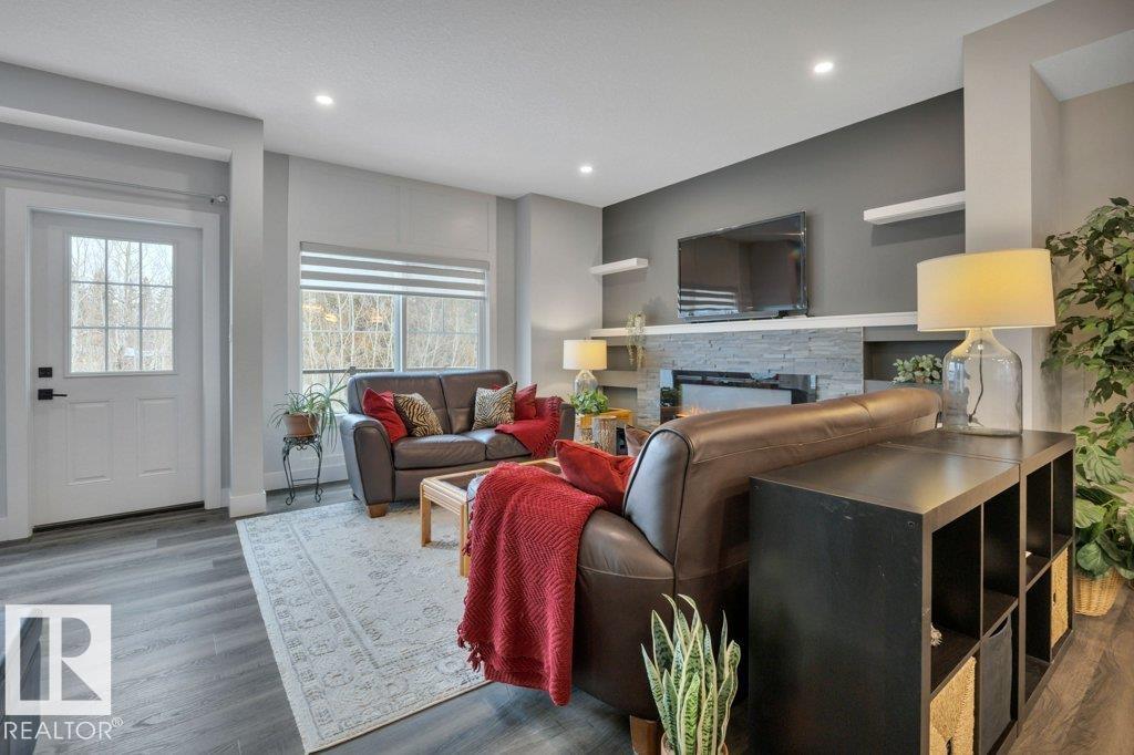 SERENE VIEWS overlooking TREED Agricultural land in Edgemont. LUX townhouse with DOUBLE ATT. GARAGE, Patio & Balcony. Upgrades galore in this 3 level, 1700 ft2 MODERN EXECUTIVE home with open design.As you enter ground level you have a Convenient OFFICE(flex room) & storage area near access to garage. UPGRADES include: IRON RAILING, QUARTZ countertops, SS Appliances, 5' LINEAR FIREPLACE featuring STONE mantel, LUX VINYL PLANK flooring,large main floor LAUNDRY room with SOUTH window,9' CEILINGS, 8' Interior Doors.he abundance of Windows emphasize the gorgeous views from the LIVING room, PRIMARY Bedroom,OFFICE too! The main floor has WHITE kitchen, PENSINSULA for break bar stools open to DINING rm all open to the LIVING rm that is perfect for entertaining ending the day on the amazing balcony views.Upstairs are 3 Large Bedrooms 2 full Bathrooms including the DREAMY PRIMARY bedroom featuring WALK-IN closet plus LUX ENSUITE with 4.5' Vanity with QUARTZ, 4' TILED SHOWER with GLASS door. Looks like a Showhome!!