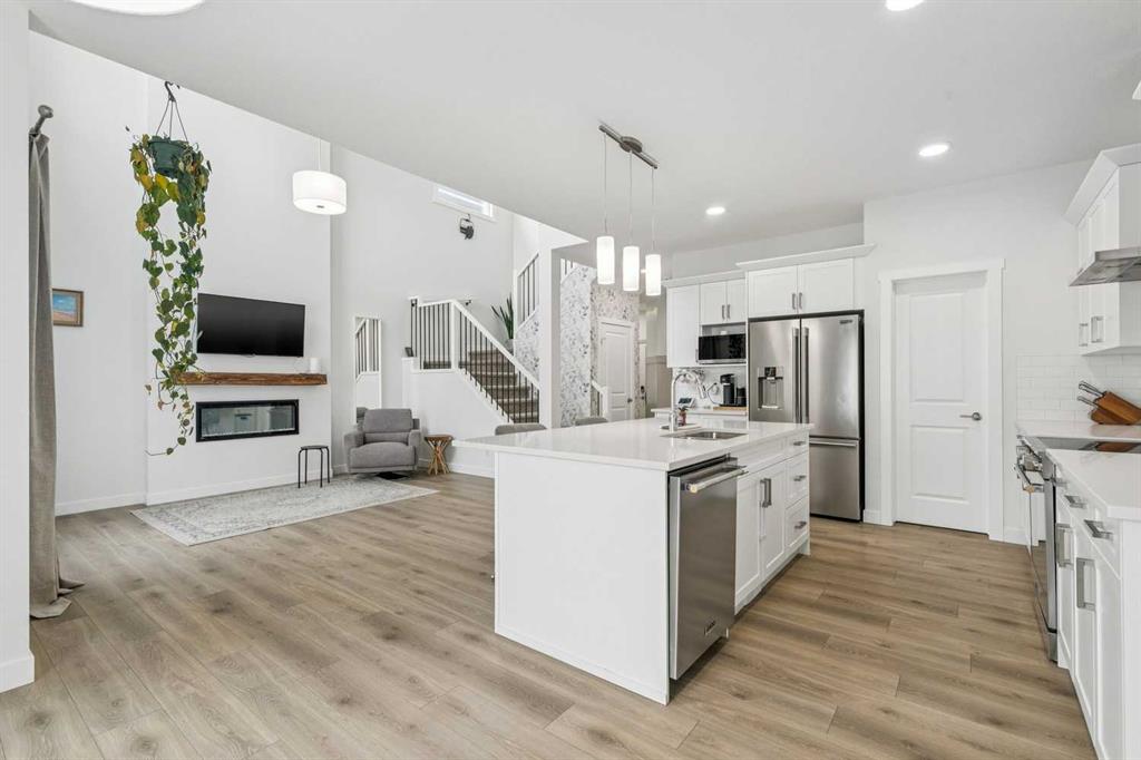 SPACIOUS 2200+ SQ FT FAMILY HOME IN HEARTLAND! This beautifully designed two-storey offers modern comfort and thoughtful functionality throughout. The bright open-concept main floor features quartz countertops, a large kitchen with walk-through pantry, and a stunning open-to-below design that fills the home with natural light. Several tasteful cosmetic upgrades add style and warmth throughout the home. A main floor den provides the perfect space for a home office or study. Upstairs you’ll find a spacious bonus room, convenient upper-floor laundry, and three well-appointed bedrooms including a huge primary retreat with walk-in closet and a luxurious 5-piece ensuite. Two additional bedrooms and a full 4-piece bathroom complete the upper level. The home also includes a separate side entrance to the basement, offering excellent potential for future development and a double attached garage. Outside, enjoy a fully landscaped and fenced yard ready for relaxing or entertaining. Located in the vibrant community of Heartland in Cochrane, close to parks, pathways, schools, and amenities.