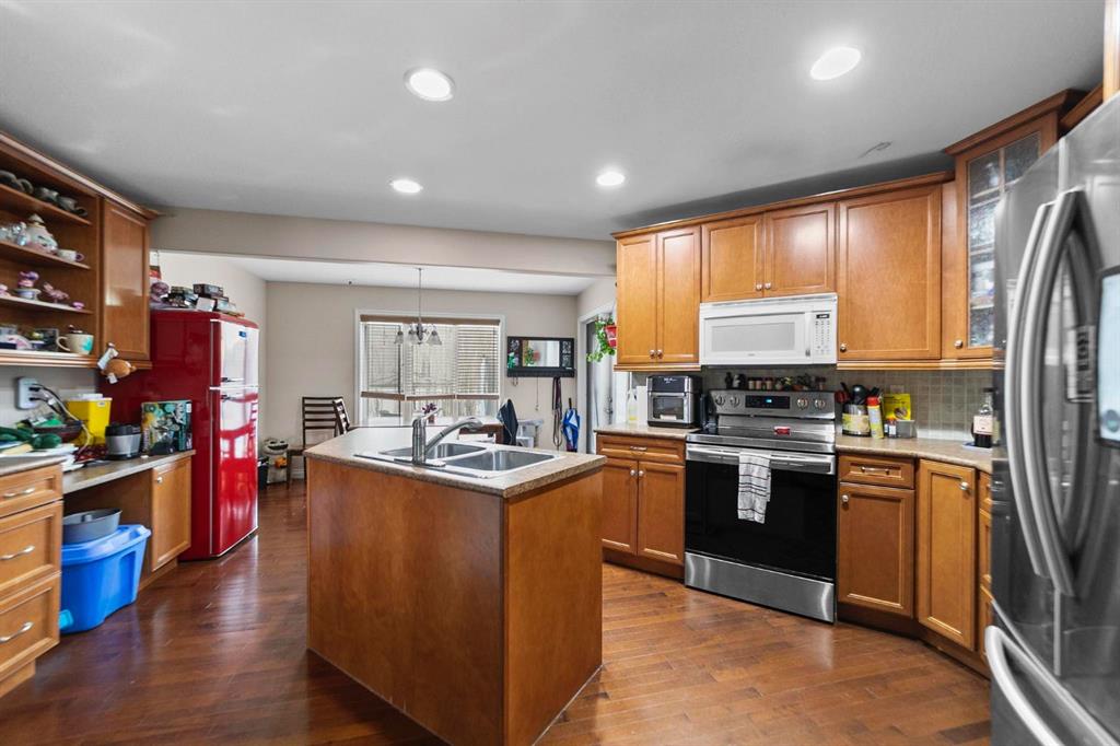 Discover this impressive two-storey home in the desirable community of Valleyview! The main floor offers a warm and inviting living room with a cozy gas fireplace, along with a bright, open kitchen and dining area featuring tons of cabinet space, a corner pantry, and a functional island. A convenient main-floor laundry room and 2-piece bath complete the level. Upstairs, you’ll find a spacious bonus room, three comfortable bedrooms, and two bathrooms, including a primary suite with a walk-in closet, en-suite, and its own private balcony—perfect for morning coffee. The basement is partially finished, giving you room to expand. You will enjoy the A/C during the summer months! Outside, enjoy a fully fenced and private yard with low-maintenance vinyl fencing, stamped concrete, and a lovely deck for entertaining. An attached heated double garage and additional RV parking make this home an exceptional find.