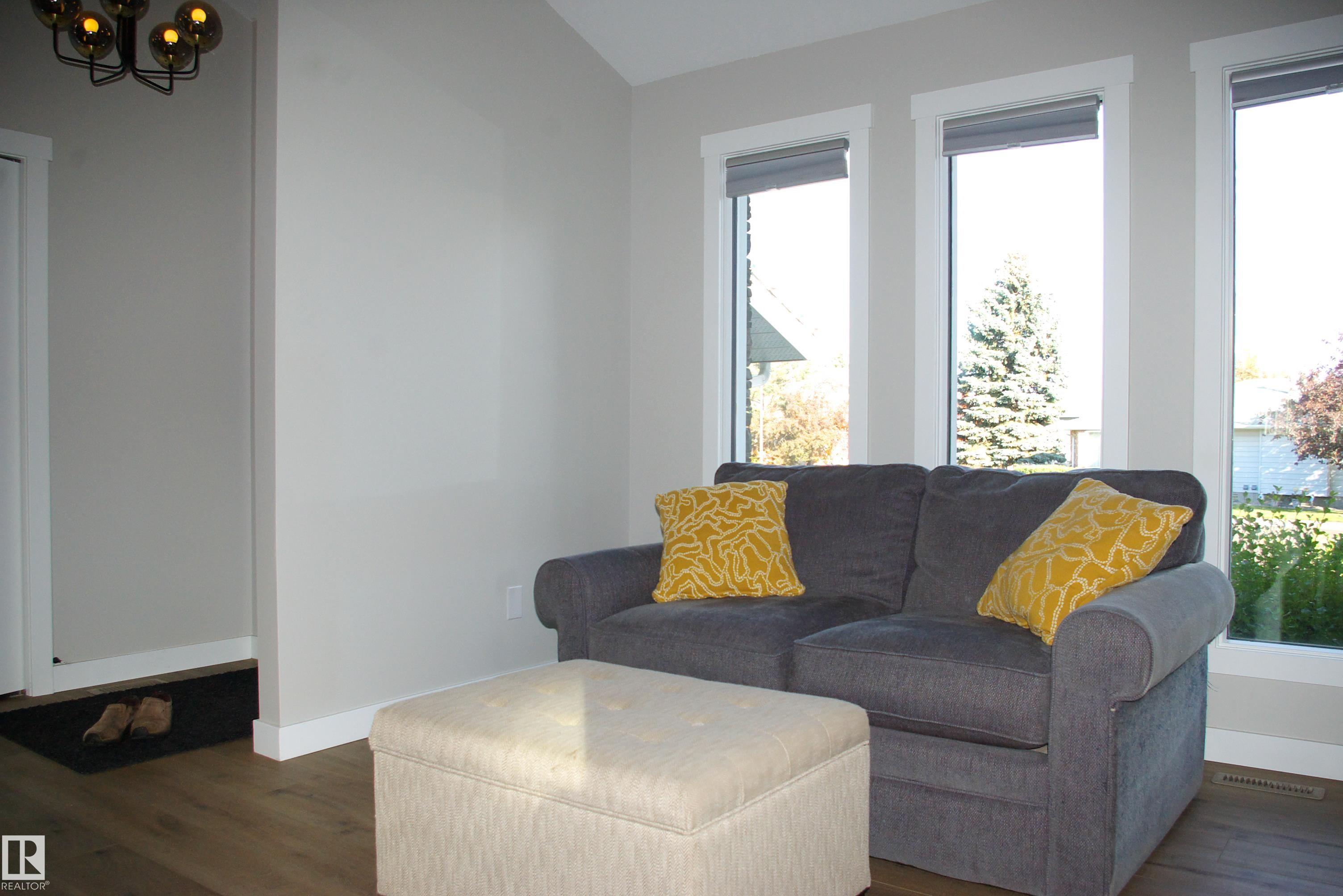 The best combination, an excellent location, with absolutely nothing left to do. Stylish 1875 sq ft two storey on a pie lot, tucked away in a cul-de-sac inside a crescent. Vaulted ceilings over the living and dining rooms, open to the upstairs. Delightful open plan at the back of the house, with a beautiful island kitchen, white and grey cabinets, quartz counters, plenty of room for casual family dining, with patio doors out to the West-facing deck and large backyard. A family room big enough for a family, with a gorgeous gas fireplace. Three bedrooms upstairs, the primary has a wonderful walk-in closet and an ensuite with double sinks and a shower big enough for three or four. The main bathroom is highlighted by the skylit soaker tub. Laundry room is on the main floor. Basement is mostly finished, primarily with a massive recreation room. There is also a fourth bedroom, RIDP off the rec room. Just move in and pat yourself on the back!! Be in before the snow flies.
