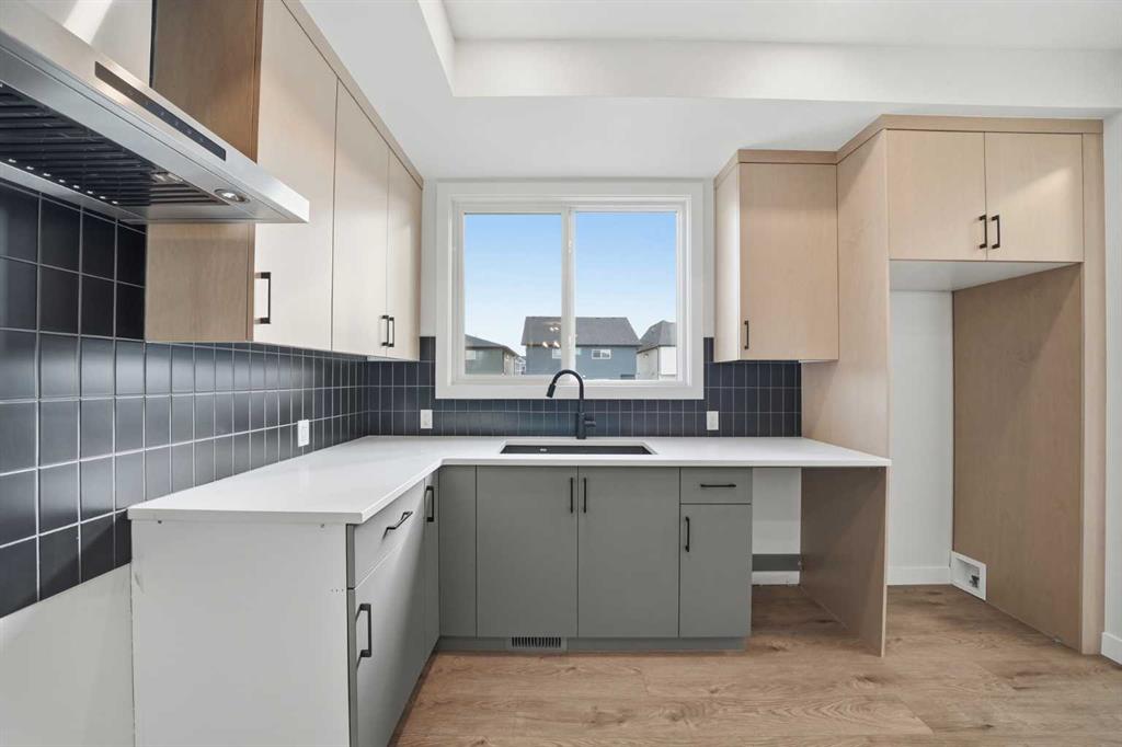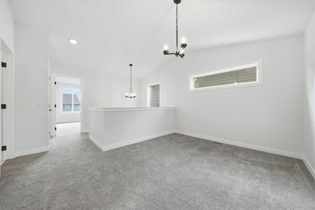 Welcome to this brand new and move in ready Copeland model at 596 Buffaloberry Manor SE. This property by Sterling Homes offers over 1,700 sq ft of thoughtfully designed living space with 3 bedrooms, 2.5 bathrooms, a main floor den, and a versatile upper-level. The main floor has a bright, open layout with luxury vinyl plank flooring throughout. The kitchen is located at the back of the home and features quartz countertops, stainless steel appliances, a chimney hood fan, tile backsplash, and a gas line for a future gas range. It opens up nicely to the dining area and living room, where a floor-to-ceiling tile electric fireplace creates a great focal point. Just off the dining space is the rear deck with a BBQ gas line rough-in, making it easy to enjoy summer evenings outside. Upstairs you'll find a central loft space that works well as a family room, office, or play area. The primary bedroom includes a walk-in closet and a 3-piece ensuite with a tiled walk-in shower. Two additional bedrooms, a full bathroom, and upper floor laundry complete the level. Other features include a main floor den, side entrance, and 9' basement walls, offering good potential for future development. The property also has rear lane access with a parking pad and space for a future detached garage. Conveniently located close to parks, pathways, schools, shopping, and major roadways, this home offers a great balance of comfort and accessibility. A great opportunity to own a brand new home from a reputable builder.
