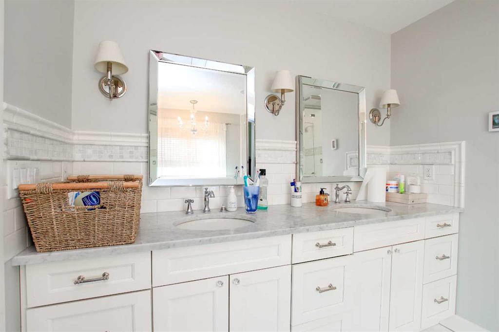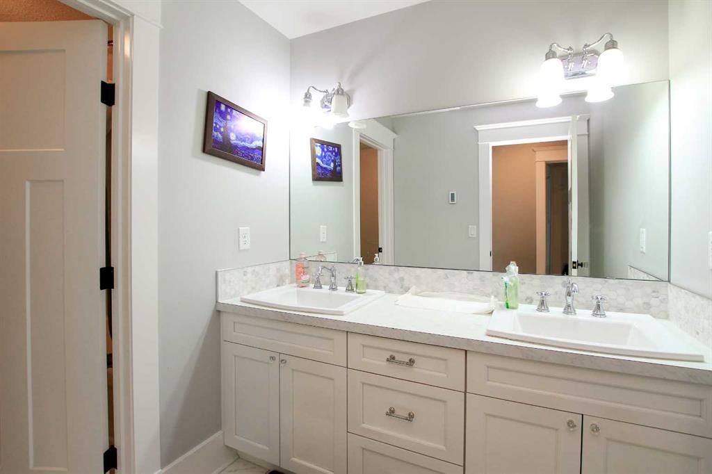 FULLY DEVELOPED 2-STOREY IN GARDEN HEIGHTS ~ WEST FACING BACKYARD WITH NO NEIGHBOURS BEHIND ~ CUSTOM BUILT HOME LOADED WITH UPGRADES ~ Covered front veranda welcomes you and leads to a 2-storey foyer ~ Open concept main floor layout is complemented by hardwood flooring and large west facing windows that fill the space with natural light ~ The stunning kitchen offers an abundance of custom cabinetry accented with crown moulding, ample stone counter space plus an unobstructed island with butcher's block, apron front sink with a window above, full tile backsplash and a walk in pantry with floor to ceiling shelving ~ Easily host a large family gathering in the spacious dining room with garden door access to the west facing deck with frosted glass privacy panels and duradek finish ~ Stunning two sided fireplace separates the living and dining rooms, has a mantle and space for a TV ~ Conveniently located home office is just off the foyer, has a closet for storage and large windows that overlook the covered veranda and front yard ~ Beautiful 2 piece main floor bathroom has a custom vanity and extensive tile ~ Huge mud room has built in bench and lockers, plus a large walk in closet, and easy access to the double attached garage ~ Open staircase leads to the upper level landing that overlooks the foyer below ~ French doors lead to the primary bedroom that can easily accommodate a king bed plus multiple pieces of furniture, and includes a spa like ensuite with dual sinks, heated tile floors, stand alone tub, walk in steam shower, water closet and a huge walk in closet with built in organizers ~ 3 bedrooms located on the upper level are all a generous size with ample closet space ~ 5 piece split bathroom is ideal for sharing, with dual sinks in one room and a separate space for the tub and toilet ~ The fully finished basement offers large above grade windows and operational in floor heating ~ The L-shaped family room has rows of recessed lighting, tons of room for a sitting area and rec space, and west facing windows with views of the park ~ 2 bedrooms (one currently being used as a craft room) share a 4 piece bathroom ~ Other great features include; maple railings, glass door knobs, custom lighting throughout, central air conditioning ~ The west facing backyard is landscaped, has well established fruit trees, a lower patio, and is fully fenced with access to the green space ~ 26' L x 24' W attached garage ~ Located in Garden Heights neighbourhood, with easy access to walking trails, multiple parks, playgrounds, many schools, excellent shopping plazas with all amenities.