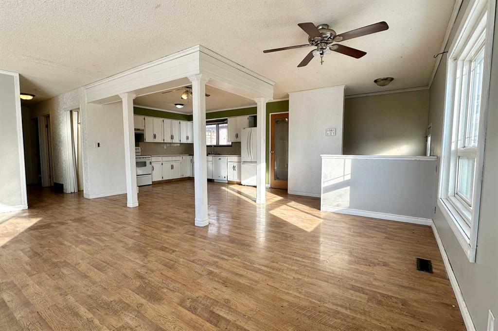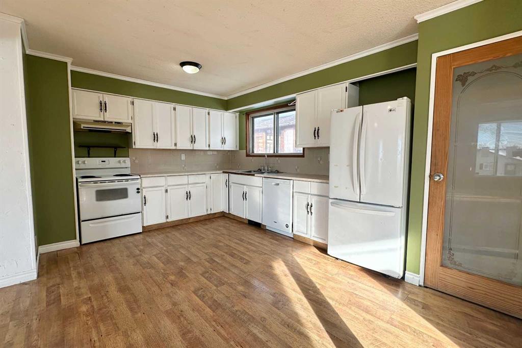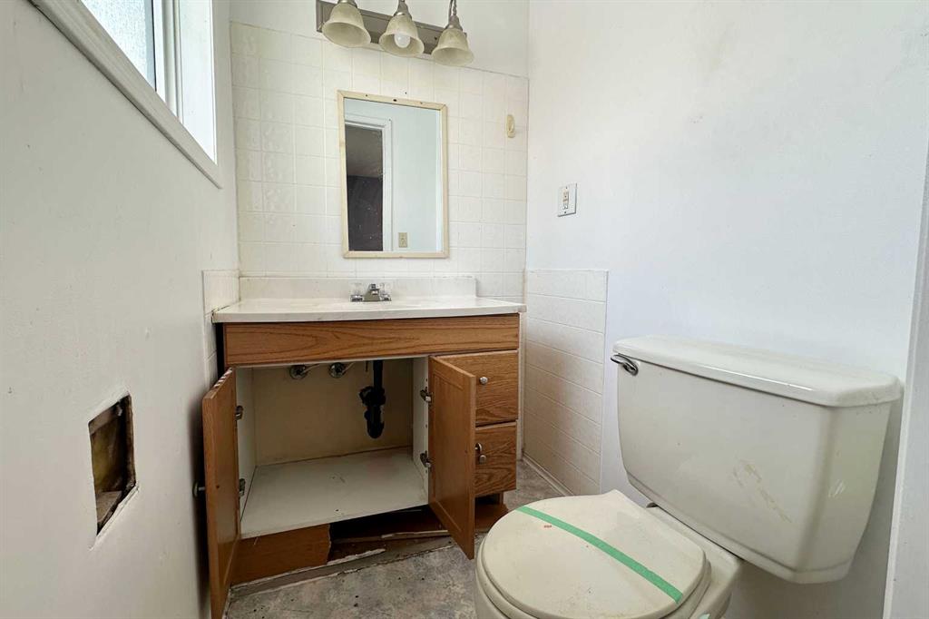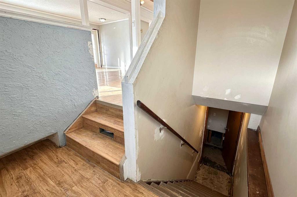 This 1,170 sq. ft. bungalow is a true blank slate that needs work but offers the perfect layout for a modern transformation. The main floor features an open-concept living and kitchen area with three bedrooms and 1.5 bathrooms, including a primary suite with a patio door leading to a large north-facing deck. The interior is in need of new flooring, paint, doors, lighting, and general repairs throughout. The basement in need of drywall repairs and the potential to add a full bathroom. Original furnace and older hot water tank. With back-alley access and extra parking in front of your 14’ x 23’ detached garage. This property is priced to reflect the work needed and is an ideal project for an investor or contractor who knows how to spot a deal.