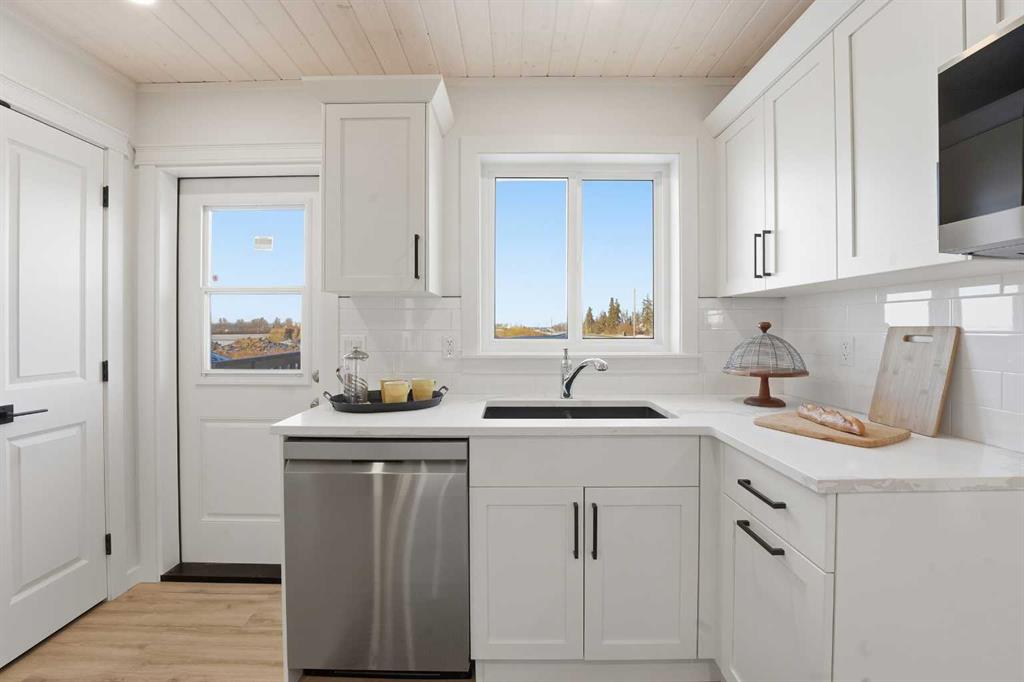 PROUDLY representing another gorgeous show home by WOLOWSKI DEVELOPMENTS INC. This winning floorplan features an OPEN CONCEPT, stunning WHITE KITCHEN with gorgeous white subway tile and stainless appliances (MICROWAVE HOOD FAN AND BUILT IN DISHWASHER). Off the kitchen leads to a spacious deck with NORTH EXPOSURE. A wall pantry, rough in for water/ice for your future fridge, and an EAT UP ISLAND. The new modern LINEAR electric fireplace in the living room features a beautiful feature wall and can be enjoyed from the kitchen and dining. WOLOWSKI homes pride themselves on their very desired whitewash pine ceilings with an attractive black beam adding a warm ambiance. There are three bedrooms on the main floor, a 4-piece bathroom, and the primary featuring its own private 4-piece bath and WALK IN CLOSET. LED LIGHTING throughout making this home affordable and low maintenance. A LUXURY VINYL PLANK in a grey/beige (GREIGE) warm colors, waterproof and durable make a perfect choice for the main floor finishes. (Pet and kid friendly) The WALKOUT basement has a roughed in 4-piece bath that is fully plumbed and wired, a roughed in floorplan with 2 more bedrooms and a large recreation room, a commercial grade hot water tank, sump pump and a high efficiency furnace. The builder will negotiate sod, fence, and basement completion. (ICF) insulated concrete foundation is more costly to build, but provides strength, energy efficiency, and is the best way to provide thermal insulation to the home. It is more fire-resistant, soundproof, and resists water and moisture. Wolowski also is one of the few builders that still ROUGH IN under floor heat. Move right in with piece of mind knowing you have a 1 year builder warranty, and a 10 year progressive new home warranty.