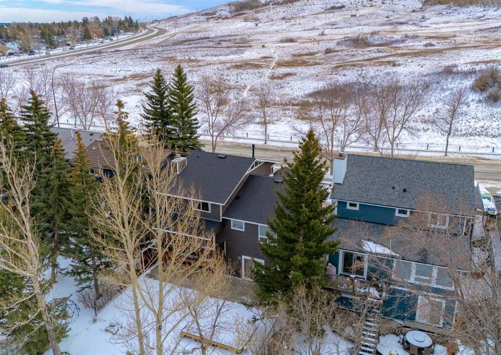 Situated directly across from Nose Hill Park and backing onto a tranquil ravine, this rare four-level split offers an exceptional blend of privacy, character, and unbeatable location. With no neighbours in front or behind, you’ll enjoy year-round views and direct access to one of Calgary’s most iconic natural spaces. Thoughtfully maintained and full of timeless architectural charm, the home welcomes you with a spacious foyer leading to a bright living and dining area featuring laminate flooring, a classic wet bar, custom built-in wood bookshelves, and elegant French doors that create separation while maintaining an open feel. The kitchen retains its original cabinetry—rich with character—complemented by tile flooring and a large window overlooking the backyard and green space beyond. Upstairs, you’ll find three generous bedrooms including a spacious primary retreat complete with a walk-in closet and private 4-piece ensuite. An additional full bathroom serves the upper level. The third level offers a warm and inviting great room anchored by an original wood-burning fireplace. Sliding patio doors lead to the renovated covered deck—an ideal setting for morning coffee or evening gatherings overlooking the ravine. This level also features a convenient 2-piece bath, laundry area, side entrance access, and entry to the attached garage. The fully developed walkout basement impresses with soaring 10’ ceilings, a fourth bedroom, den/home office, 3-piece bathroom, and ample storage. Patio doors open directly to the lower-level patio and private backyard, seamlessly connecting indoor and outdoor living. Recent updates include asphalt shingles (2025), siding and eavestroughs (2025), vinyl windows, driveway, and a renovated deck and patio. Located just minutes from Creekside Shopping Centre, Superstore, Costco, schools, the Calgary Winter Club, and offering quick access to Stoney Trail and Deerfoot Trail, this home combines natural beauty with everyday convenience in one of Calgary’s most family-friendly communities. Opportunities like this—across from Nose Hill and backing onto a ravine—are exceptionally rare. Click the media link for the full video tour and book your private showing today.