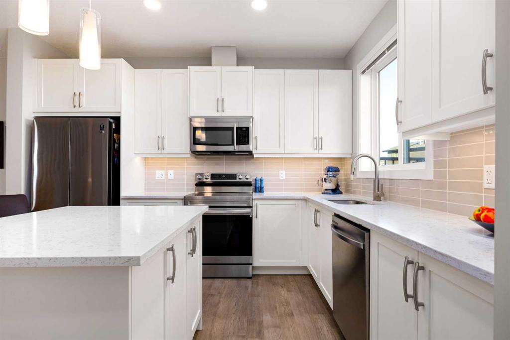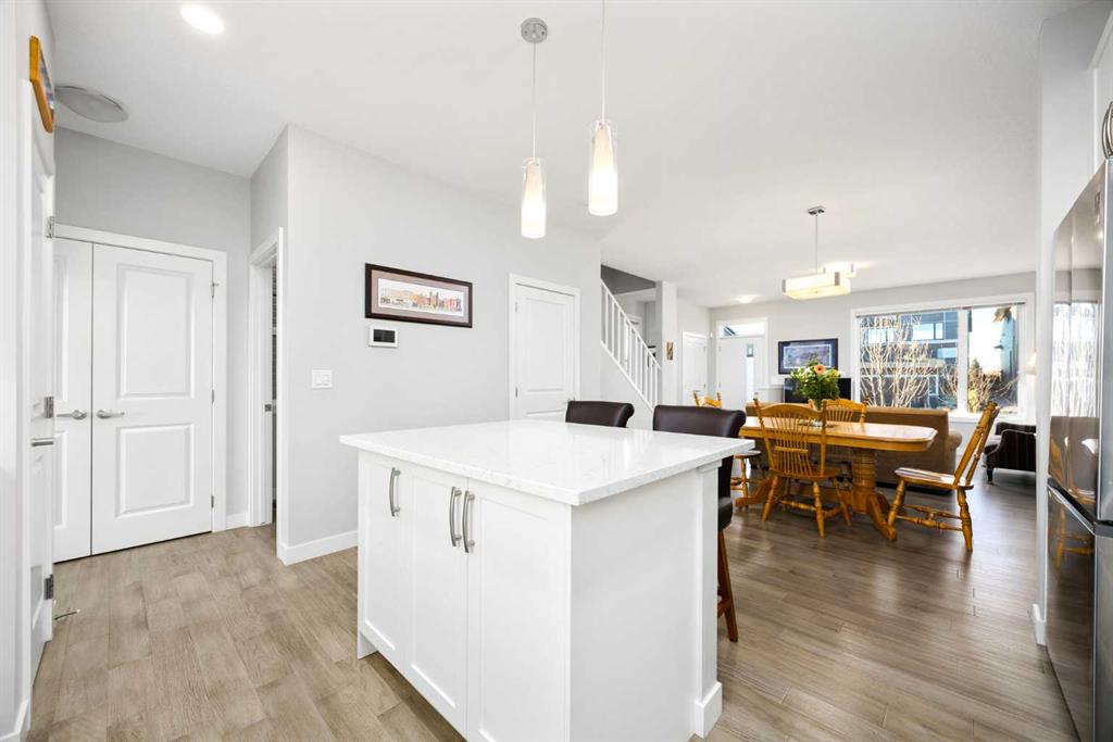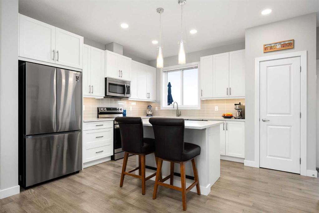 Experience refined living in Cochrane’s highly coveted PRECEDENCE neighbourhood, where luxury, style, and comfort come together in this exceptional END-UNIT townhome. Meticulously designed and beautifully upgraded, this residence offers an unparalleled lifestyle in one of Cochrane’s most prestigious communities. Fully Finished from top to bottom with over 2000 + Sq/ft of developed living space! From the moment you step inside, you're greeted by sleek engineered hardwood flooring that sets the tone for the sophisticated interiors. The bright, west-facing living room is bathed in natural light, creating an inviting space that seamlessly blends relaxation and elegance. The gourmet kitchen is a true standout, featuring quartz countertops, stainless steel appliances, thoughtful under-cabinet lighting, and a gas line already installed—perfect for those who love to cook or dream of future upgrades. The open layout flows effortlessly to the sunny deck, the perfect place to enjoy your morning coffee while soaking in the warmth of the morning sun. Upstairs, you’ll find a thoughtfully designed level filled with elevated touches. The primary bedroom is a serene retreat, offering peaceful east-facing views of breathtaking sunrises, a generous walk-in closet, and a 4-piece ensuite. A second spacious bedroom showcases charming peek-a-boo mountain views, while an additional 4-piece ensuite bathroom, cozy reading space, and convenient laundry space add both comfort and practicality. The upgraded open baluster railing enhances the upper level with an airy feel and allows light to flow beautifully throughout the space. The fully finished walkout basement expands your living options with a large recreation room perfect for entertaining, a private third bedroom ideal for guests or a home office, and an additional full bathroom. The walkout design leads to a tranquil lower patio, creating a seamless indoor-outdoor experience. Completing this remarkable property is a double detached garage, offering both convenience and functionality. With no condo fees, stunning curb appeal, and unmatched attention to detail, this home stands out as a rare opportunity in Precedence—where nature, luxury, and lifestyle meet. Homes of this calibre don’t come along often. Discover the elevated living experience that awaits you in this extraordinary townhome.