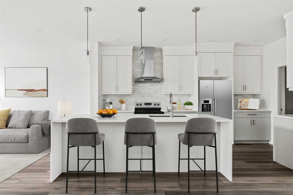 This brand new Oxford model by Brookfield Residential offers exceptional space, thoughtful design, and a fully developed basement - creating a four-bedroom, 3.5-bathroom home that is fully move-in ready in the coveted new community of Rockland Park. With nearly 2,000 sq. ft. of living space above grade and additional professionally finished lower-level living, this home is perfectly suited for growing families and those who value both everyday functionality and entertaining space. The bright front great room features a wall of windows that floods the main floor with natural light all day, while a central fireplace creates a warm and inviting atmosphere year-round. Anchoring the main level is the beautifully designed kitchen, which features a chimney hood fan, a built-in microwave, and an expansive pantry for exceptional storage. The open layout seamlessly connects the kitchen to the dining and living areas - ideal for hosting gatherings or enjoying family time. A versatile flex space perfectly accommodates a home office or study area, while a rear mudroom and 2-piece powder room complete the main level. An open wood railing with iron spindles guides you to the upper level where a central bonus room thoughtfully separates the primary retreat from the secondary bedrooms, offering privacy and comfort. The spacious primary suite provides room for a full bedroom set and features a large walk-in closet along with a private 4-piece ensuite including dual sinks and a walk-in tiled shower. Two additional bedrooms, a full bathroom, and a conveniently located laundry room with storage complete the upper floor. The professionally developed basement expands the home’s versatility, adding a fourth bedroom, a full bathroom, and additional living space perfect for guests, a recreation area, a home gym, or a media room. Outside, the sunny southwest backyard provides excellent natural light and outdoor enjoyment, maximizing optimal sunshine all year long. The private backyard includes a gas line for a BBQ and a double parking pad with ample space to accommodate a double detached garage if desired. Backed by both the Builder Warranty and Alberta New Home Warranty, this move-in ready home offers comfort, space, and long-term peace of mind in a brand new property.