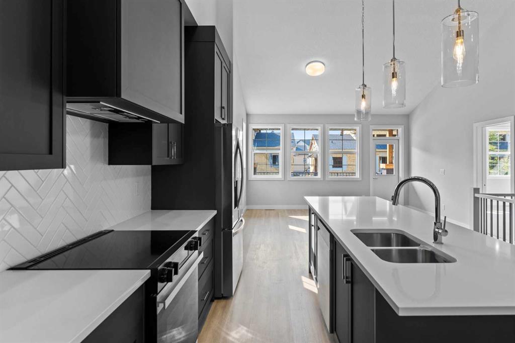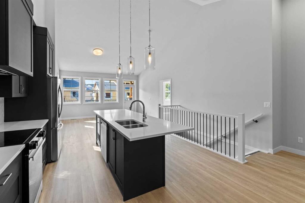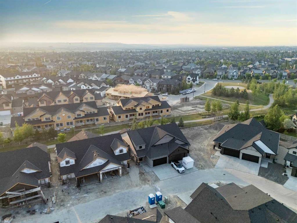 Discover this rare opportunity within Acadia Villas, an exclusive, private gated community nestled in the heart of the award-winning Cooper's Crossing neighborhood. Designed specifically for the discerning downsizer, this community features just 40 meticulously crafted, luxury bungalows, promising both security and serenity. Step into this exceptional bungalow, spanning 1,401 square feet of thoughtfully designed open concept living. The bright and airy ambiance in living area is defined by soaring vaulted ceilings that flood the space with natural light, enhancing the sense of spaciousness and grandeur. The main floor has an ideal layout which hosts 1 bedroom plus den and two full bathrooms, complemented by a practical back hall and a dedicated laundry room for ultimate convenience. The primary bedroom is a true sanctuary, featuring its own vaulted ceiling and generous proportions. The opulent five-piece ensuite is a spa-inspired finishes complete with a walk-in shower, a decadent freestanding soaker tub, and elegant double sinks. Throughout the home, you will find premium finishes including sleek quartz countertops with undermount sinks, durable luxury vinyl plank, and sophisticated tile flooring in all bathrooms. Every detail reflects an unwavering commitment to luxury and low-maintenance living. For those envisioning even more living area, the unfinished basement presents limitless potential. This expansive space offers the opportunity to add additional bedrooms, an expanded entertainment area, or a personalized recreational space—ensuring the home can grow with your changing needs. Acadia Villas provides luxury living without compromise, offering the independence of a bungalow with the security and maintenance-free ease of a gated community.