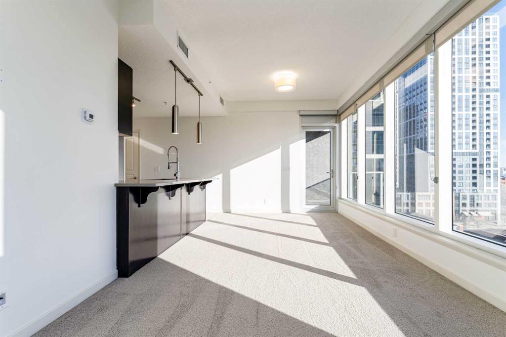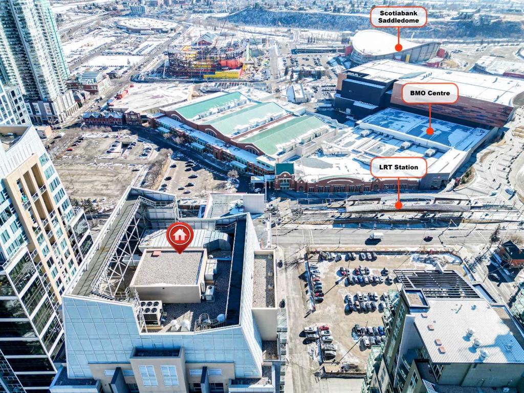 Welcome to Alura in Calgary's vibrant Beltline! This beautifully maintained 2-bedroom, 2-bathroom condo offers an exceptional downtown lifestyle featuring fantastic views of the Scotiabank Saddledome and Stampede Park. Recently refreshed with fresh paint and brand-new carpets, the home feels bright, clean, and move-in ready. The modern kitchen is perfect for entertaining, complete with quartz countertops, stainless steel appliances, and ample cabinetry. The spacious primary bedroom features a large walk-in closet and a private 4-piece ensuite, while the thoughtful floor plan provides excellent separation between the two bedrooms. Floor-to-ceiling windows fill the space with natural light and lead to a private balcony, ideal for relaxing or barbecuing while enjoying the downtown atmosphere. Residents of Alura enjoy a wide range of premium amenities including a fully equipped fitness centre, concierge service, 24-hour security, central air cooling, and a second floor rooftop terrace. The location is unbeatable—just steps from the Scotiabank Saddledome, the soon to open "Scotia Place", the Calgary C Train Victoria Park/Stampede Station, shopping, dining, and recreation at the MNP Community Sport Centre. This unit also includes one titled underground parking stall, an assigned storage locker, and in-suite laundry for added convenience. Don’t miss your opportunity to own in one of downtown Calgary’s most desirable buildings—book your private showing today!