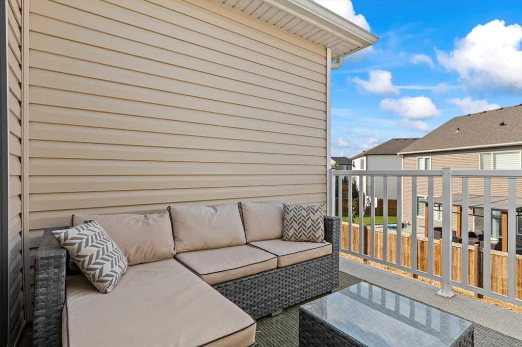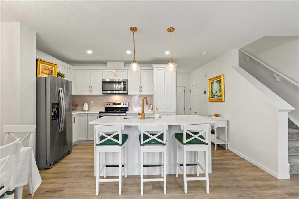 Welcome to this beautiful NO CONDO FEE, FREEHOLD, FULLY UPGRADED townhouse with DOUBLE ATTACHED GARAGE, proudly hitting the market for the first time. Lovingly cared for by its original owner, this non-smoking home offers a fresh and well-kept environment, now ready for its new chapter as the family looks to move into a larger property. From the moment you walk in, you will feel the inviting atmosphere and notice how well maintained it is. The main floor features a bright open-concept layout with a spacious living room, dining area, and a stunning kitchen complete with high-end stainless steel appliances, quartz countertops, and upgraded hardware, faucet, and light fixtures. More than $35,000 in upgrades include quartz countertops in the kitchen and bathrooms, knockdown ceilings, luxury vinyl plank flooring, stainless steel appliances, upgraded light fixtures, LG ENERGY STAR® washer and dryer, and a refrigerator with filtered water and ice. The location is excellent, with a park and playground right in front, and close proximity to schools, shopping, parks and restaurants. A 2-piece bath, mudroom, and access to the double attached garage complete the main level. Upstairs you will find a generous primary bedroom with a large walk-in closet, private balcony, and a 4-piece ensuite finished with quartz countertops, a stylish backsplash, and elegant light fixtures. Two additional well-sized bedrooms, another 4-piece bath, and the convenience of upstairs laundry with upgraded washer and dryer complete the upper level. The basement is unfinished and awaits your ideas, with rough-in plumbing already in place for a future bathroom. This move-in ready townhouse has everything you are looking for - don’t miss it!