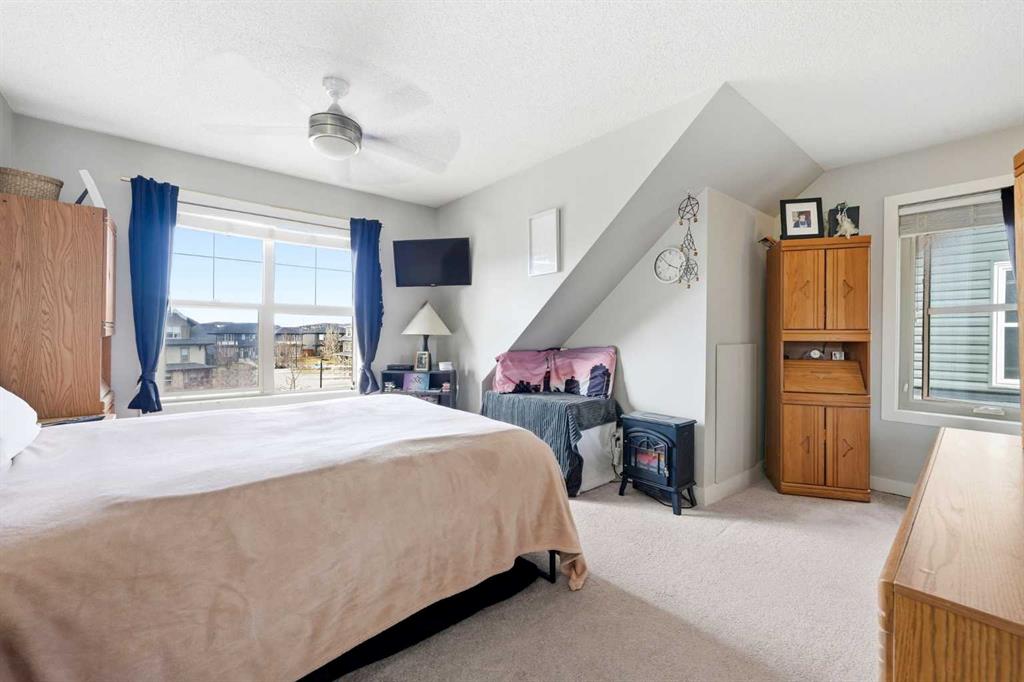 Welcome to a thoughtfully designed townhouse in the family-friendly community of Heartland, offering space, functionality, and everyday comfort in a well-managed complex. One of the standout features of this home is the full-floor primary retreat—an entire level dedicated to your own private space, complete with beautiful mountain views. It’s the perfect place to unwind, separate from the rest of the home. With two additional bedrooms and a fully finished basement, there’s no shortage of flexible living space for family, guests, home office, or even a dedicated gym space. The main level is bright and welcoming, with a functional open-concept layout and access to your west-facing porch—perfect for enjoying afternoon sun. Practical features set this home apart, including two titled parking stalls, low condo fees, and thoughtful upgrades like the LG Thinq Smart washer and dryer (new last year) and five ceiling fans for added comfort throughout. You’ll love the walkable lifestyle, with three fantastic parks just steps away—including a play area with climbing wall, a new pond, and a dog park—plus easy access to a nearby shopping plaza featuring everyday essentials like Petro-Canada, Tim Hortons, a pharmacy, restaurants, and more, including the popular Ruben’s Veggies for fresh seasonal produce. Whether you’re stepping into the market, simplifying your space, or adding to your portfolio, this property offers strong value with a layout that truly works. Located in a growing and well-connected Cochrane community with convenient access to Calgary and the mountains, this is a smart move in Heartland.