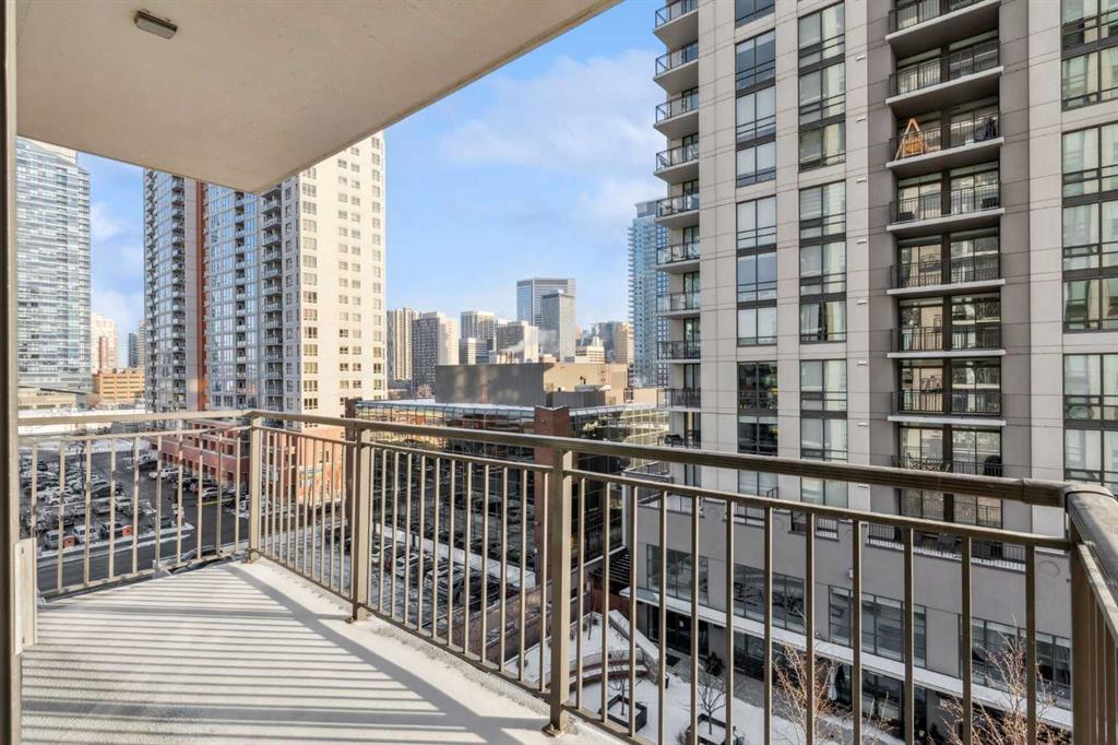 comfort, well-maintained air-conditioned 1-bedroom + den condo, located in the heart of Calgary’s Beltline .Brand new Refrigerator, Brand new Oven . An efficient open-concept layout seamlessly connects the kitchen, dining, and living areas. The U-shaped kitchen is equipped with a gas cooktop, oven, microwave hood fan, refrigerator, dishwasher, tiled backsplash, ample cabinetry, and a breakfast bar island. Sliding doors from the living room open onto a generously sized balcony. floor-to-ceiling windows complete the bright bedroom and living room. The den/storage provides excellent flexibility to set up an office. The unit includes titled heated underground parking . Building amenities include full time concierge, bike storage room, guest suites, fitness room, party room, in building visitor parking.