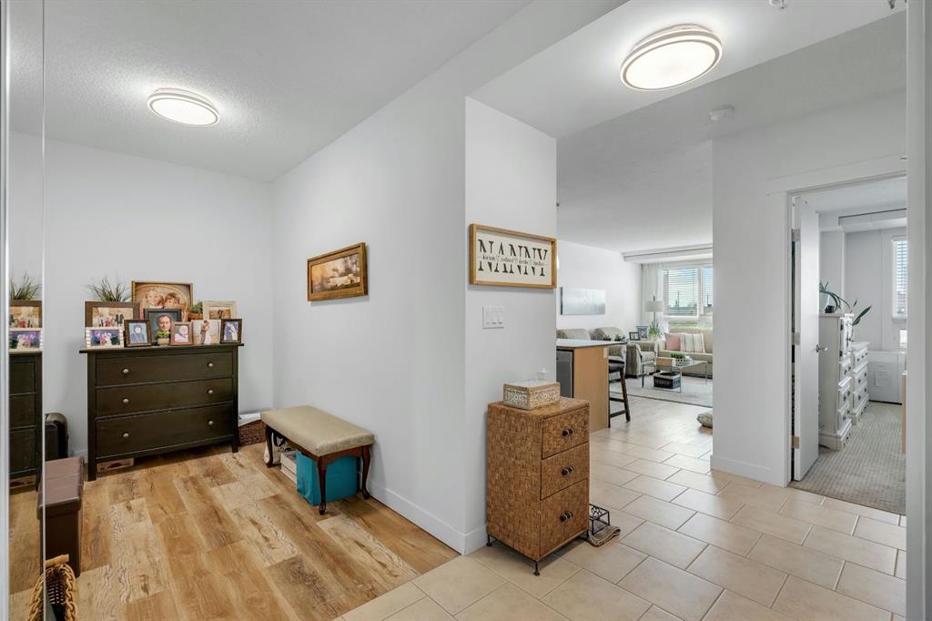 This stunning 1-bedroom, 1 full-bath, 1 den 6th floor unit is a true testament to pride of ownership, featuring thoughtful updates and an open-concept living space with 9 foot ceilings that create a spacious, airy atmosphere. With newer LVP flooring, stainless steel appliances, this modern residence is the urban haven you’ll love coming home to. The energy-efficient building boasts large south-facing windows that flood the rooms with natural light. Cooking enthusiasts will appreciate the well-appointed kitchen, equipped with light and airy cabinetry for ample storage, and a large granite island perfect for meal prep or casual dining. The breakfast bar connects the kitchen to the dining and living areas, making entertaining a breeze. Step out onto the balcony, where a gas line makes barbecuing easy, all while enjoying sunny southern views. The spacious dining area is ideal for intimate dinners or larger gatherings, and the generous living room provides ample space for your furniture, creating a versatile environment for relaxation or hosting guests. Retreat to the primary bedroom with a large closet, huge bonus is the fabulous den area that provides the perfect space for an office, or if you have guests, add a dynamic Murphy bed, and voilà, you have a versatile space for overnight visitors! Located down the hall, the convenience of in-suite laundry that simplifies everyday chores. The elegantly finished 4-piece bathroom features a granite counter and dedicated storage area ensures your living space remains organized and clutter-free. This unit is move-in ready, allowing you to settle in and enjoy immediately. For added convenience, the condo includes one unassigned heated indoor parking stall and bike storage on the main level of the parkade. Building amenities cater to a modern lifestyle, featuring a dedicated concierge service from Monday to Friday, 24-hour security, and three high-speed elevators for easy access. Relax in the sunroom terrace on the 17th floor, where you can unwind and take in panoramic views. The prime location offers unbeatable convenience, with direct parkade access to Save-On-Foods, Tim Hortons, and the "Shops at Heritage" right next door. The Heritage LRT Station is just across the street, providing quick and easy transit access.For outdoor enthusiasts, nearby bike trails, Glenmore Reservoir, Fish Creek Park, and numerous green spaces offer endless recreation options. Major shopping centers like Walmart, Chinook Centre, and South Centre are only minutes away, along with a variety of restaurants, pubs, and amenities that make this location truly exceptional. Don't miss your chance to experience this incredible property. Great revenue property or first-time home buyer.