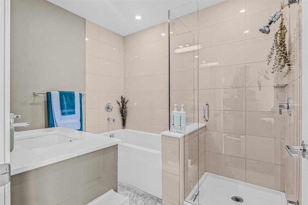 Welcome to this stunning one-bedroom penthouse suite located in the highly sought after community of Hillhurst. Perfectly positioned for an inner-city lifestyle, you’ll be just steps away from downtown, the Sunnyside C-Train station, Riley Park, trendy coffee shops, boutique shopping, and some of Calgary’s best restaurants. This top floor unit is designed to impress with a bright, open layout and floor-to-ceiling windows that fill the space with natural light. The kitchen, complete with quartz countertops, stainless steel appliances, and a gas cooktop with an eat-up breakfast bar, flows seamlessly into the dining and living areas, the perfect open-concept space for entertaining or relaxing at home. The private balcony offers breathtaking mountain views, an ideal backdrop for your morning coffee or evening wind-down. The primary bedroom features a walk-through closet leading to a spa-inspired ensuite, creating a relaxing retreat right at home. Additional features include in-suite laundry, a titled heated underground parking stall, an assigned storage locker, bike room and access to a residents’ car wash. If you’ve been looking for the perfect blend of convenience, style, and comfort in the heart of Calgary, this Hillhurst penthouse is it! Pets are welcome with board approval. Seller is offering 3 months paid condo fees to the buyer!