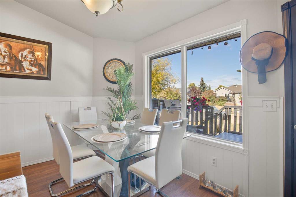 Welcome to this beautiful 5-bedroom home set on a large, private lot surrounded by mature trees and birdsong—offering the tranquility of country style living with the convenience of town amenities. And best of all, there are no sidewalks to shovel in the winter! Inside, you’ll find a bright and inviting main floor with vaulted ceilings that create a sense of openness and generate natural light throughout. There's plenty of cupboard space, a large pantry area, and good looking stainless steel appliances in the kitchen. The kitchen island is a great gathering spot for friends and family. Upstairs, the spacious master bedroom provides plenty of room for relaxation. Two additional bedrooms, a refreshed full bathroom with large vanity, and a dedicated laundry room complete the upstairs. You'll appreciate the all-in-one washer/dryer combo that adds convenience, saved space, and efficiency to your laundry tasks. The lower two levels feature a recently finished 2-bedroom, 1-bathroom basement suite (illegal) - perfect for extended family and guests. With a separate entrance on the North (backyard) side of the house and back lane parking, this suite is in demand in today's tough-to-find-a-decent rental world. It contains its own kitchen with stainless steel appliances, sizeable living room area, two bedrooms, an updated bathroom, extra storage, and a separate laundry area with washer and dryer. Some of the updates throughout the home include flooring, paint, countertops, and tile. All appliances on the main levels and in the suite are included in the sale. 61 Pickwick Lane is ideally situated on a desirable City of Lacombe/English Estates lot with a peaceful country feel - offering plenty of space to play, garden, or simply relax with friends and family. The natural gas bbq on the two-tiered deck, the shed, and garden boxes are included. You’ll be pleased with the double garage for secure parking and extra storage. The driveway and backyard pad provide additional parking for vehicles, work trailers, RVs, and/or other toys. English Estates is quiet, safe, and ideally located near shopping, coffee, restaurants, playgrounds, parks, ball diamonds, schools. It is also connected to Lacombe's excellent walking/biking trail system. The home offers quick access to the primary roads of Alberta (Highways 2A and the QEII) - making commuting a breeze.. This home offers space, versatility, and natural beauty—everything you’ve been looking for.