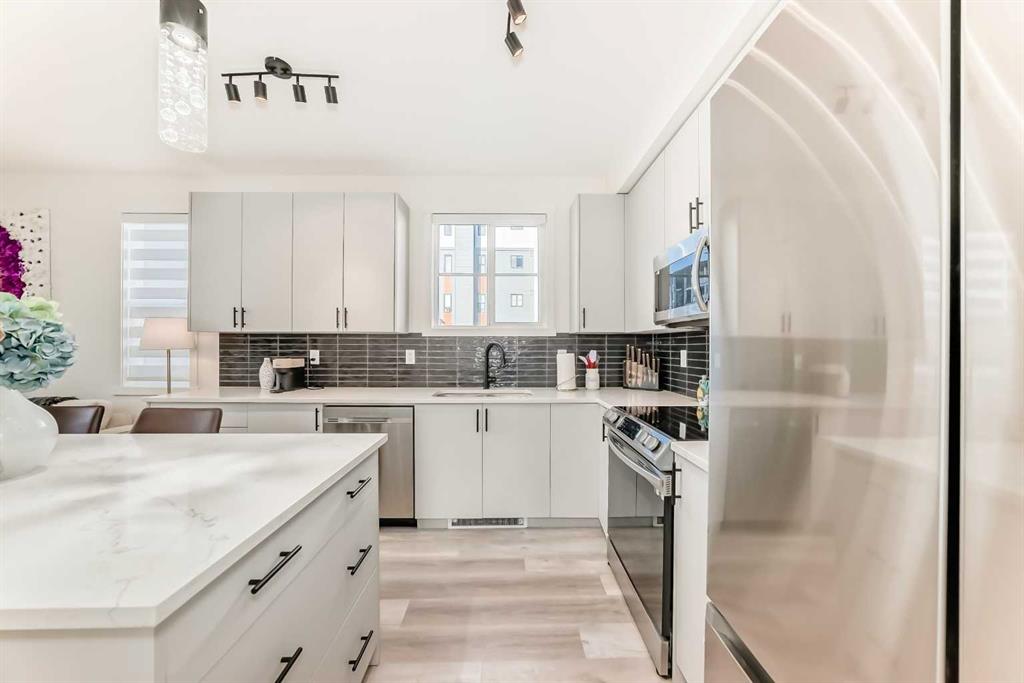 Two Parking Spots | Two Bedrooms | Two Full Bath | Sunny End Unit | Highly upgraded home! Welcome home to this highly upgraded corner unit in Sage Hill Park II, where luxury meets affordability. Located next to a tranquil natural reserve, this beautiful residence is perfect for nature lovers who enjoy peaceful strolls. This sunny end unit features two spacious bedrooms and two full bathrooms, including an upgraded ensuite bathroom that transforms your primary suite into a true retreat. With 9 ft. ceilings and additional windows, the living space is filled with natural light, enhanced by brand-new zebra window coverings and stylish upgraded lighting throughout. The stunning kitchen boasts every upgrade offered by the builder, including full-height cabinets, an extra bank of cupboards, and elegant Quartz countertops. The eat-at kitchen island invites friends and family to gather as you prepare delicious meals with upgraded stainless steel appliances. The large living room provides ample room for various furniture arrangements, making it ideal for both relaxation and entertaining. This home also includes two highly desirable parking spots—one heated underground and one surface spot—conveniently located just around the corner from your entrance. The second parking spot, valued at $20,000, is a great bonus; if you only need one, you have the option to rent it out for approximately $200 per month. Additionally, you'll find a large front hall closet with upgraded built-in storage and a stackable washer and dryer for added convenience. Stay comfortable year-round with air conditioning and enjoy the outdoor living space on the expansive west-facing balcony, perfect for your gas BBQ (with a gas line ready for use) and outdoor furniture. This enclosed balcony is a fantastic spot to relax during the warmer months, and it features a gate that makes it easy to take walks or let your pet out; it’s a truly pet-friendly complex with no size restrictions for pets (approval required). Feel secure in your new home with a recently upgraded security system and access fob. The low condo fees of just $345.87 per month cover all utilities except electricity and are managed exceptionally well. Sage Hill is a community where you’ll find everything you need within minutes, including grocery stores, Costco, Walmart, restaurants, and a new 24-hour Goodlife Fitness. This is the home that checks every box on your list and one where you will surely fall in love!