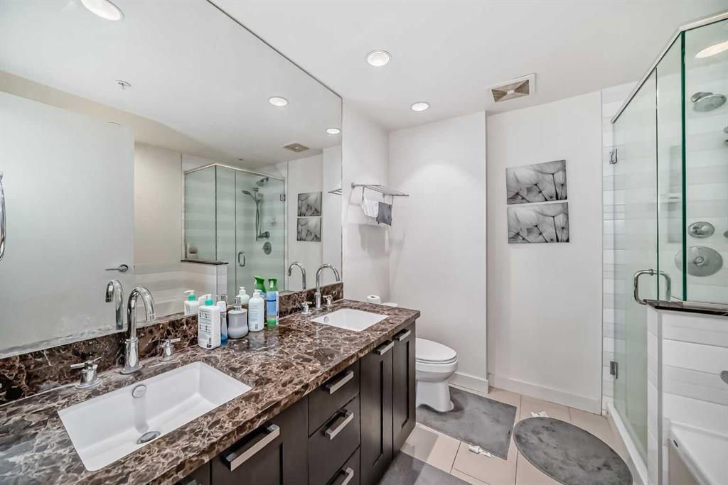 Welcome to elevated urban living in this beautifully maintained 6th-floor condo at Waterfront, offering 948 sq ft of thoughtfully designed space in one of Calgary’s most desirable riverfront locations. This 2-bedroom, 2-bathroom + office unit features a bright, open-concept layout with large windows that fill the home with natural light and showcase beautiful city and Bow River views. The functional kitchen offers ample cabinetry and counter space, seamlessly connecting to the spacious living and dining areas—perfect for both everyday living and entertaining. A dedicated office/den space provides the ideal setup for working from home or studying, adding versatility to the layout. The primary bedroom includes a private ensuite, while the second bedroom is perfect for guests or additional living needs. A second full bathroom ensures comfort and convenience for residents and visitors alike. Enjoy the added benefits of in-suite laundry, a private balcony for relaxing or entertaining, and two assigned secure underground parking stall. The building also offers controlled access and professional management for peace of mind. Ideally situated just steps from the Bow River pathways, Prince’s Island Park, Eau Claire, Chinatown, restaurants, cafes, shopping, and public transit, this home delivers an exceptional inner-city lifestyle. Perfect for professionals, downsizers, or investors seeking a premium downtown opportunity.