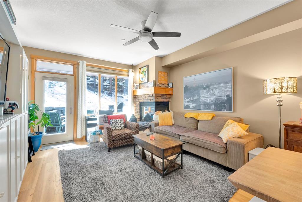 This 2 bed, 2 bath home in Canmore’s sought after Three Sisters community offers the perfect mix of comfort, function, and location. Inside, you’ll find exposed wood cabinetry, solid stone countertops, and matching wood trim, doors, and vanities that give the home a clean, mountain feel. The open layout includes a gas fireplace with exposed rock and a wooden mantle, plus loads of natural light and a primary suite with a 3 piece ensuite and walk in closet. Heated linoleum floors with in-floor radiant water heating keep things efficient and warm year round. Step outside to your private patio with a built in gas BBQ, great for winding down after a day in the mountains or entertaining friends and family. This unit comes with two heated, secured underground parking stalls and a large heated storage unit for all your gear. You're minutes to Stewart Creek Golf Course, downtown Canmore’s restaurants and shops, and right next to a network of hiking, biking, and walking trails. Banff National Park is just 15 minutes away, with four major ski resorts - Norquay, Sunshine, Nakiska, and Lake Louise, all within a 40 minute drive. A clean, well-kept home in a prime location - ready for full time living or a mountain escape.