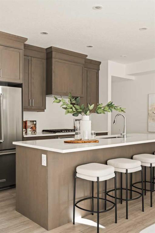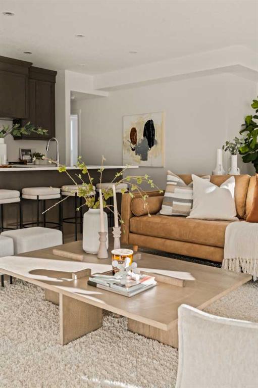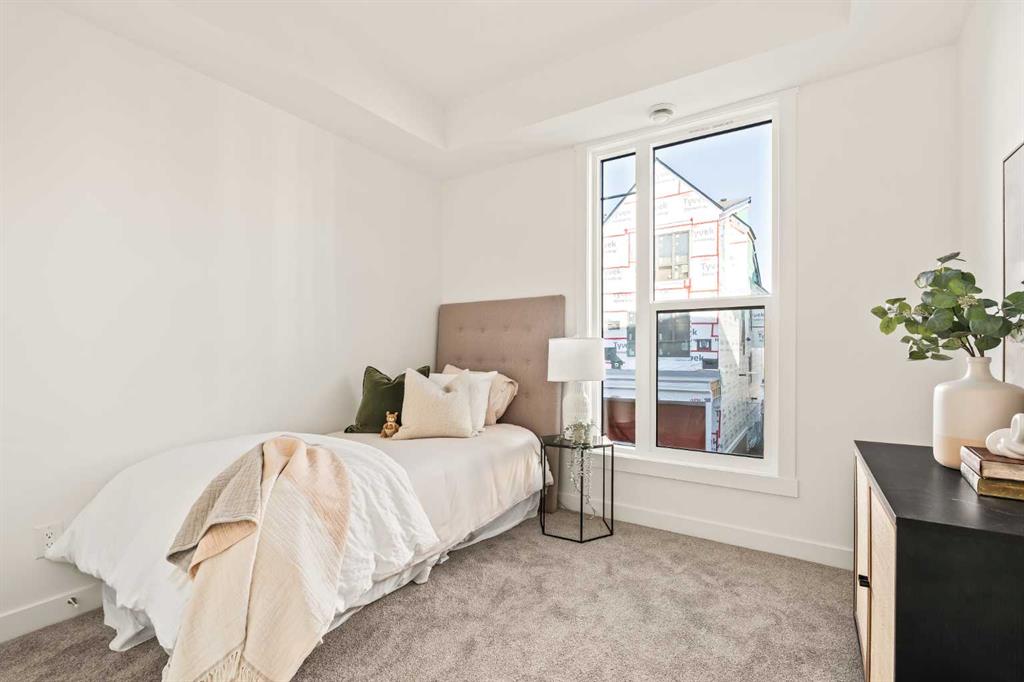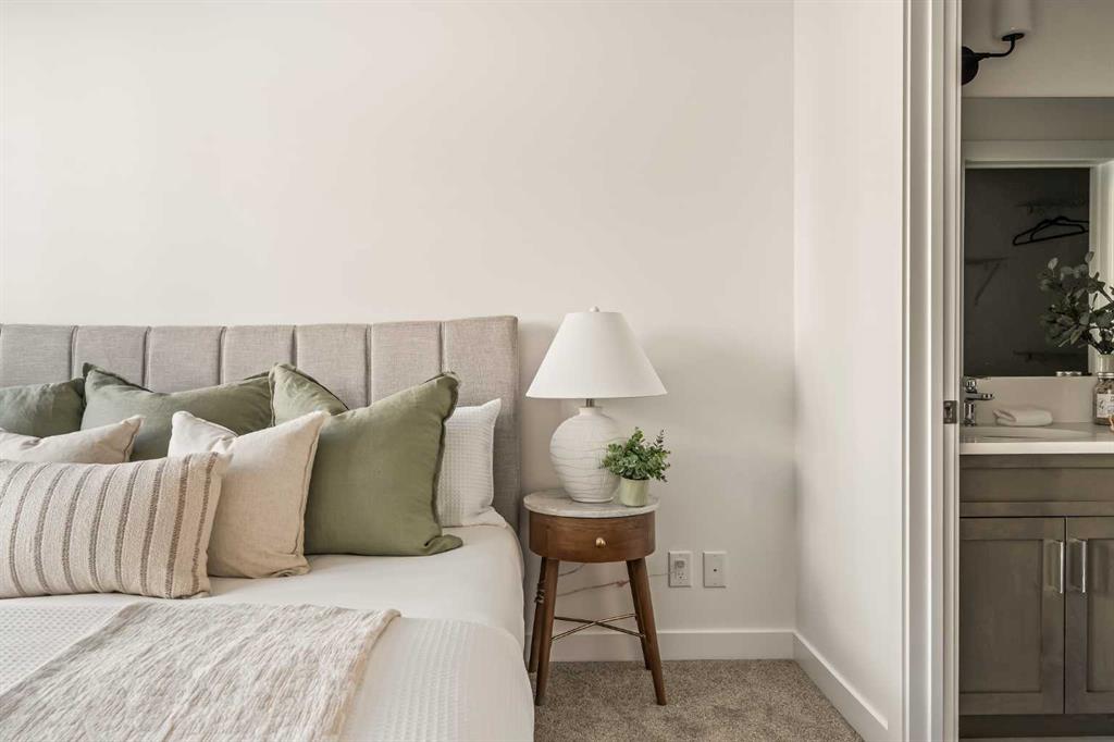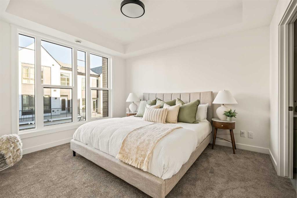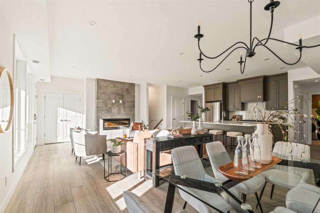 Welcome to the Regent at Crown Park, a beautifully crafted bungalow-style townhome offering true single-level living without compromise! This unique design combines the benefits of a bungalow lifestyle without compromising on storage or garage space, all while moving into a brand new beautiful home with full warranty! Thoughtfully designed with down-sizers in mind, this maintenance-free residence is perfect for those who travel or simply prefer a lock-and-leave lifestyle free from exterior upkeep, landscaping, or snow removal. This brand-new 3-bedroom, 2-bathroom home offers nearly 1,300 sq.ft. of well-planned living space on one level, plus a lower level featuring extensive storage and access to the oversized double garage. At the heart of the home, a stunning open-concept living area was created for effortless entertaining. The central kitchen seamlessly connects the living and dining spaces while a full wall of south-west facing windows floods the interior with natural light all year long. Timeless finishes include warm-tone natural wood shaker maple cabinetry, light quartz countertops, and a premium built-in appliance package featuring a gas cooktop, built-in oven, and chimney hood fan - ensuring the chef is always part of the conversation. A striking floor-to-ceiling tile fireplace anchors the great room, offering a warm focal point and comfortable seating for gatherings. The spacious dining area easily accommodates a full table and buffet, providing exceptional furnishing flexibility. Privately positioned at the rear of the home, the primary retreat features a generous walk-in closet and spa-inspired ensuite with dual vanities and a tiled walk-in shower with 10mm glass. A centrally located laundry room with upper cabinetry and folding counter enhances everyday convenience while naturally separating the primary suite from the secondary bedrooms. Two additional bedrooms and a full bathroom provide versatility for guests, a home office, media room, or creative space - while maintaining excellent resale appeal. The lower level offers a large storage room and an oversized utility room (approx. 17' x 7') ideal for hobbies or seasonal storage. A double closet and oversized double attached garage completes the interior features on the lower level. Step outside to your private covered southwest-facing patio spanning over 26 feet that overlooks the park and includes a gas line, hose bib, and A/C rough-in - the perfect setting for relaxed outdoor living and future upgrades in mind. Bungalow-style townhomes with double attached garages are exceptionally rare. Enjoy added peace of mind with comprehensive builder warranty coverage plus Alberta New Home Warranty. Located minutes from downtown and surrounded by established amenities, Crown Park offers the confidence of a mature community paired with the comfort of a brand-new home. This is one of the very last brand new opportunities remaining - a truly rare opportunity you won’t want to miss!