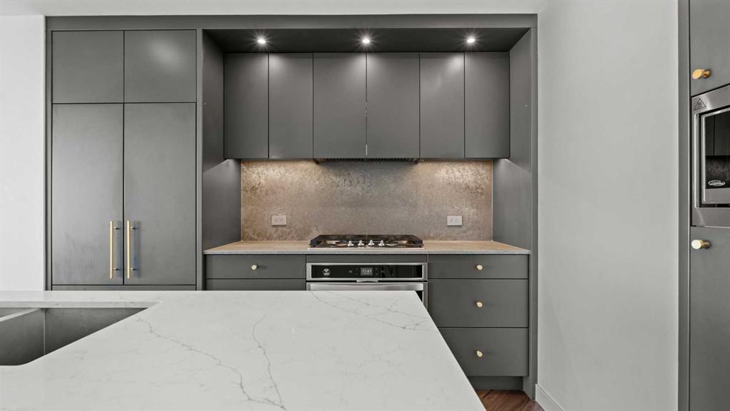 Welcome to Gateway by Truman in Calgary’s premier West District—where modern design meets urban convenience. This beautifully designed 2-bedroom, 2-bath condo offers 756 sq. ft. of elegant living space plus a private balcony off the living area, perfect for relaxing or entertaining outdoors. Step inside to an open-concept layout featuring a stunning designer kitchen with quartz countertops, full-height cabinetry, and built-in appliances that blend seamlessly into the space. The spacious living room flows naturally onto the balcony, allowing abundant natural light through large windows. The primary suite offers a walk-in closet and a luxurious 3-piece ensuite, while the second bedroom is ideal for guests or a home office, paired with a full 4-piece bathroom. Enjoy the comfort of air conditioning, in-suite laundry, and underground titled parking. The building also features an impressive lobby, retail shops on the main level, and nearby amenities including restaurants, grocery stores, and fitness studios—all just steps away. Situated in one of Calgary’s most sought-after communities, this condo delivers the perfect balance of lifestyle, luxury, and location—just minutes from downtown and surrounded by parks, pathways, and mountain views.